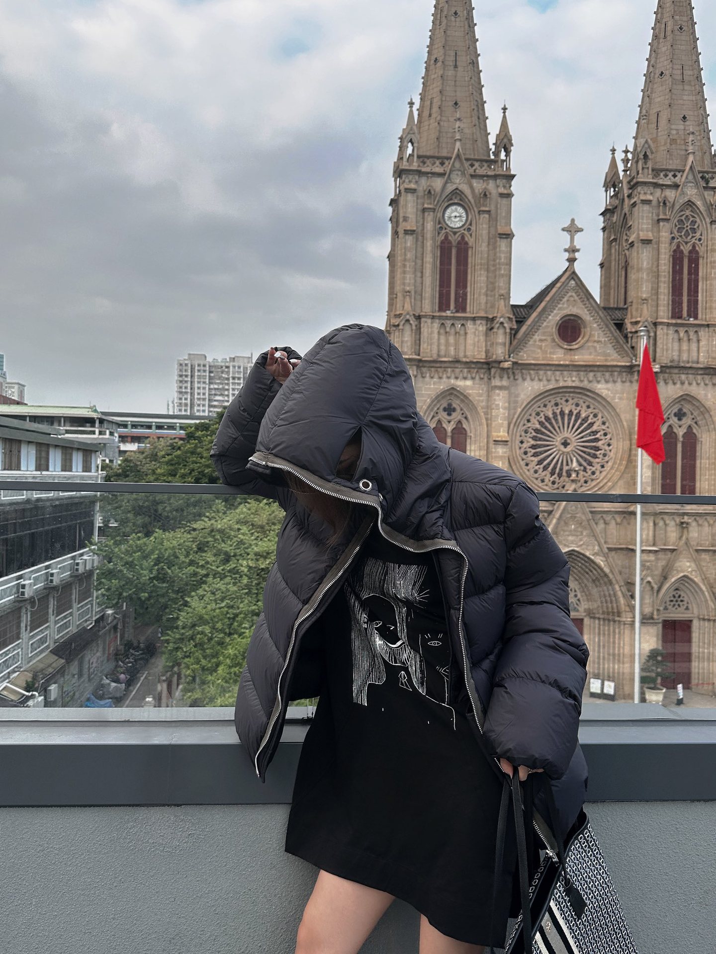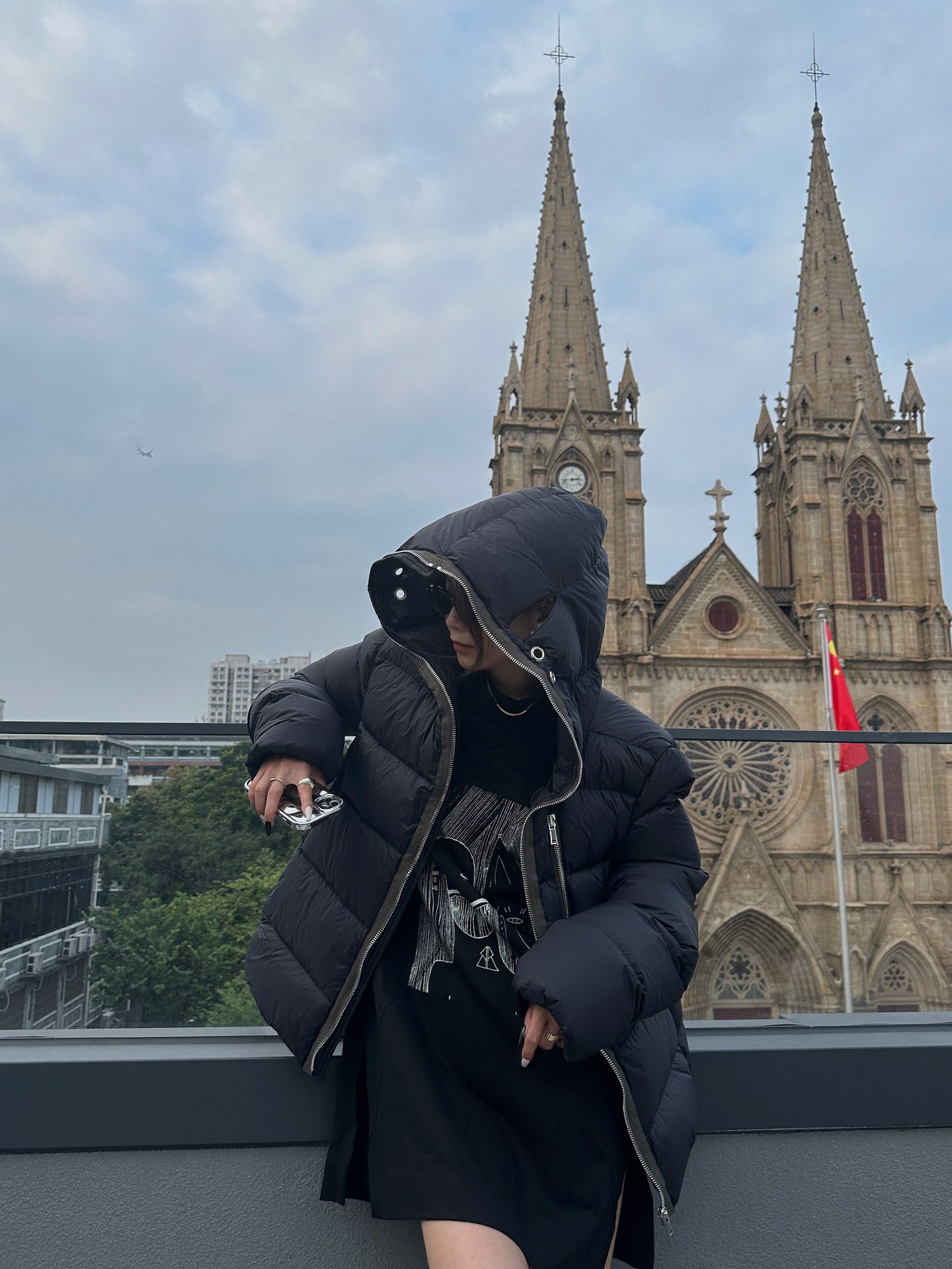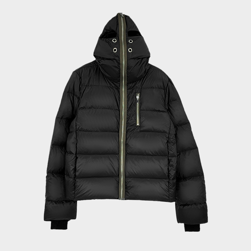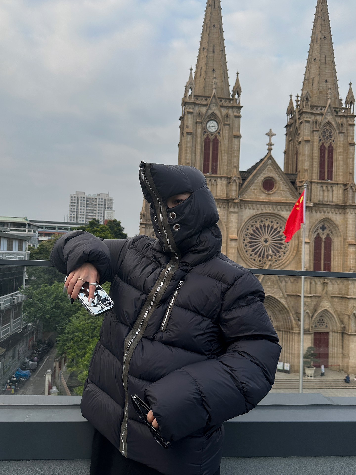 겨울용 남성 다운 재킷, 고급스러운 다크 스타일, 상어 머리가 있는 마스크형 지퍼, 보온성 좋은 일반 다운 재킷스토어 가기