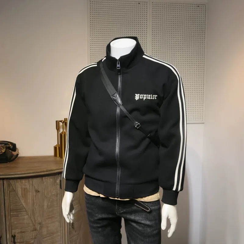 터틀넥 재킷 가디건 재킷 지퍼 사이드 스트라이프 자수 스포츠 캐주얼 한국 유행 봄 가을과 겨울 스웨터 남성용
