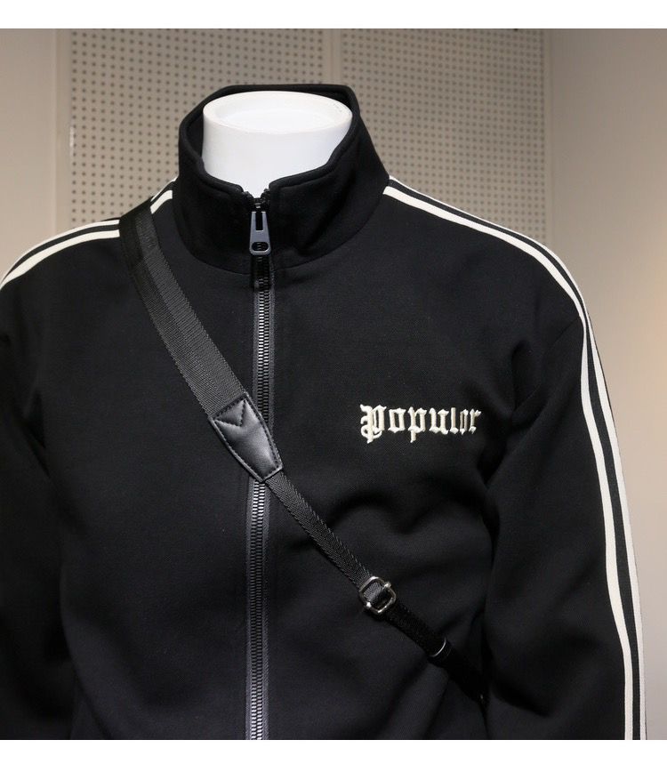 터틀넥 재킷 가디건 재킷 지퍼 사이드 스트라이프 자수 스포츠 캐주얼 한국 유행 봄 가을과 겨울 스웨터 남성용스토어 가기