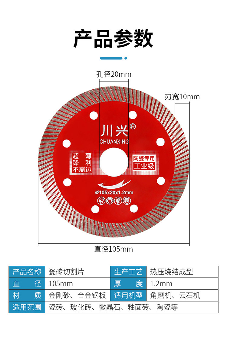 세라믹 타일 커팅 피스 올-세라믹 유리질 타일 세라믹 특수 앵글 그라인더 블레이드 가장자리 치핑 아티팩트가없는 초박형 건식 절단 톱날