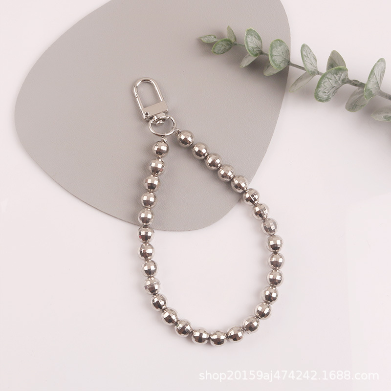 새로운 전기 도금 실버 짧은 비드 체인 자동차 키 체인 펜던트 크리에이티브 볼 체인 이어폰 세트 여성용 가방 액세서리스토어 가기
