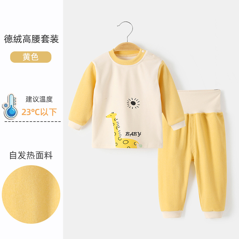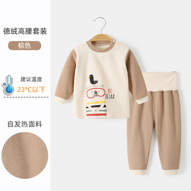 아기 벨벳 가을 옷 세트 따뜻한 분할 아기 속옷 가을과 겨울 높은 허리 배꼽 보호 남성과 어린이 여성을위한 내부 착용 의류