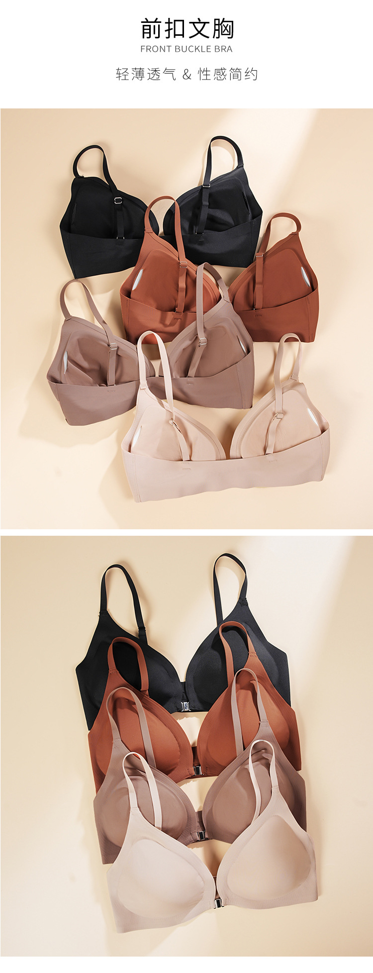 국경 간 추적없는 대형 섹시한 속옷 여성의 얇은 작은 가슴 푸시 업 조정 가능한 브래지어 앞 버클 여성용 브래지어