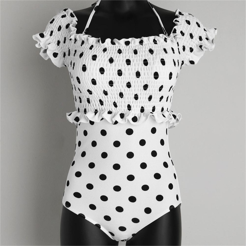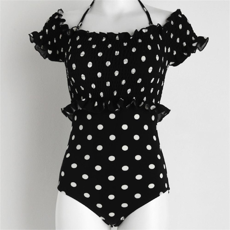 2022 새로운 한국 스타일 수영복 레트로 도트 섹시 슬림 핏 배꼽 커버 등이없는 유행 귀 가장자리 여성용 원피스 수영복스토어 가기