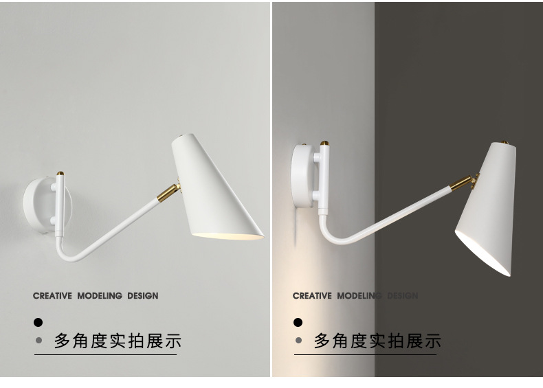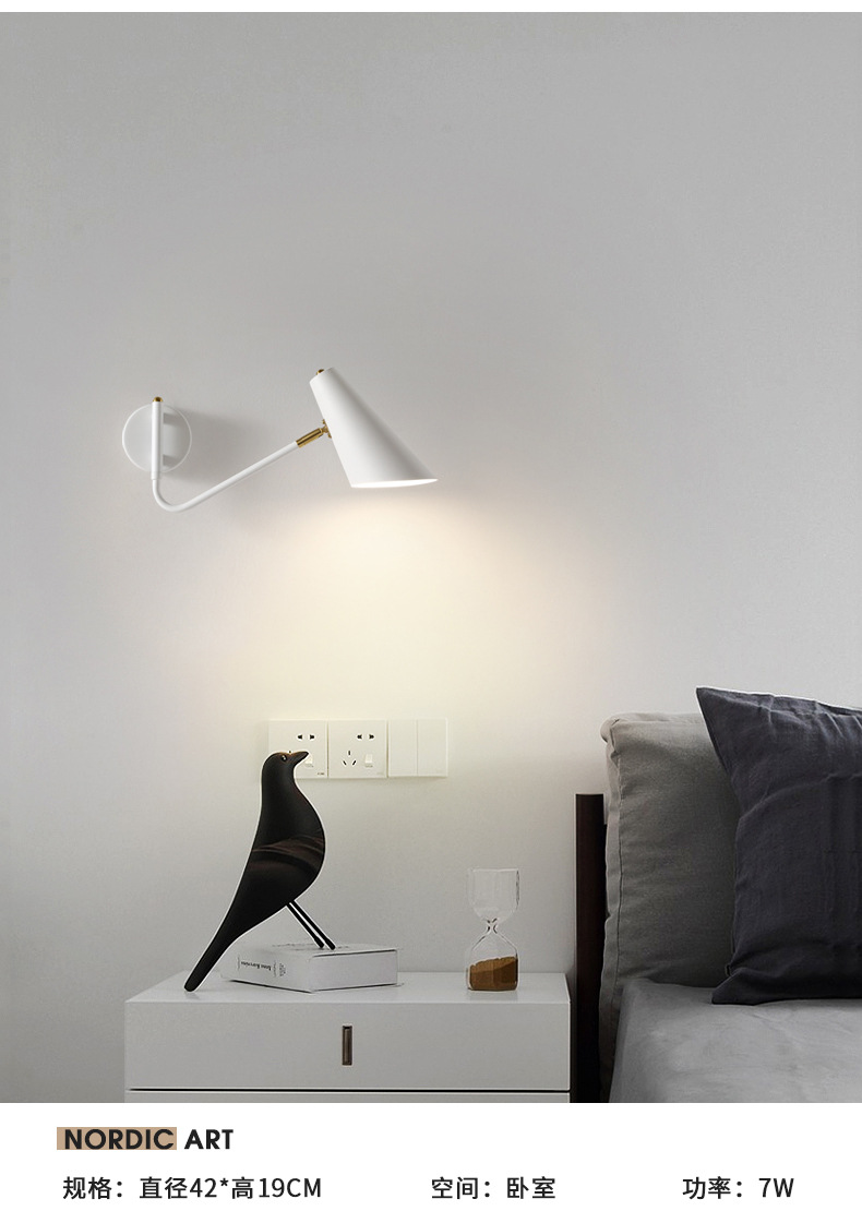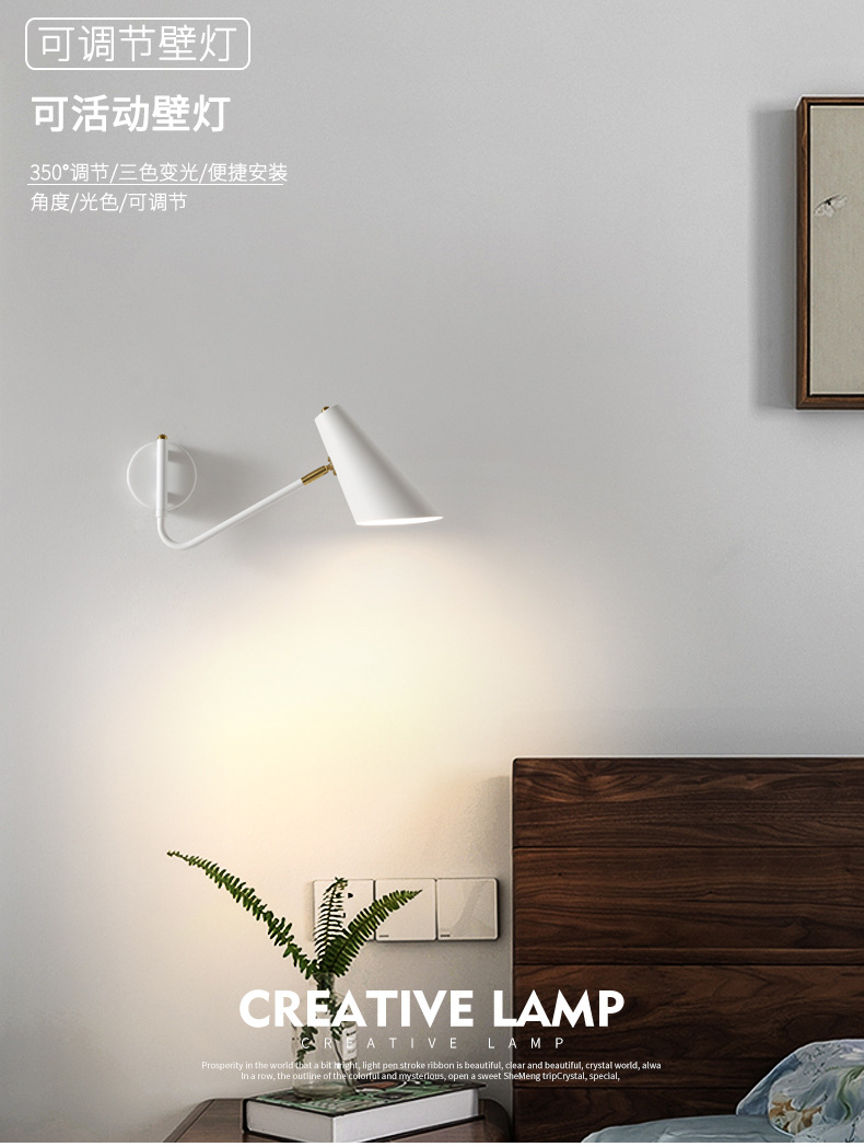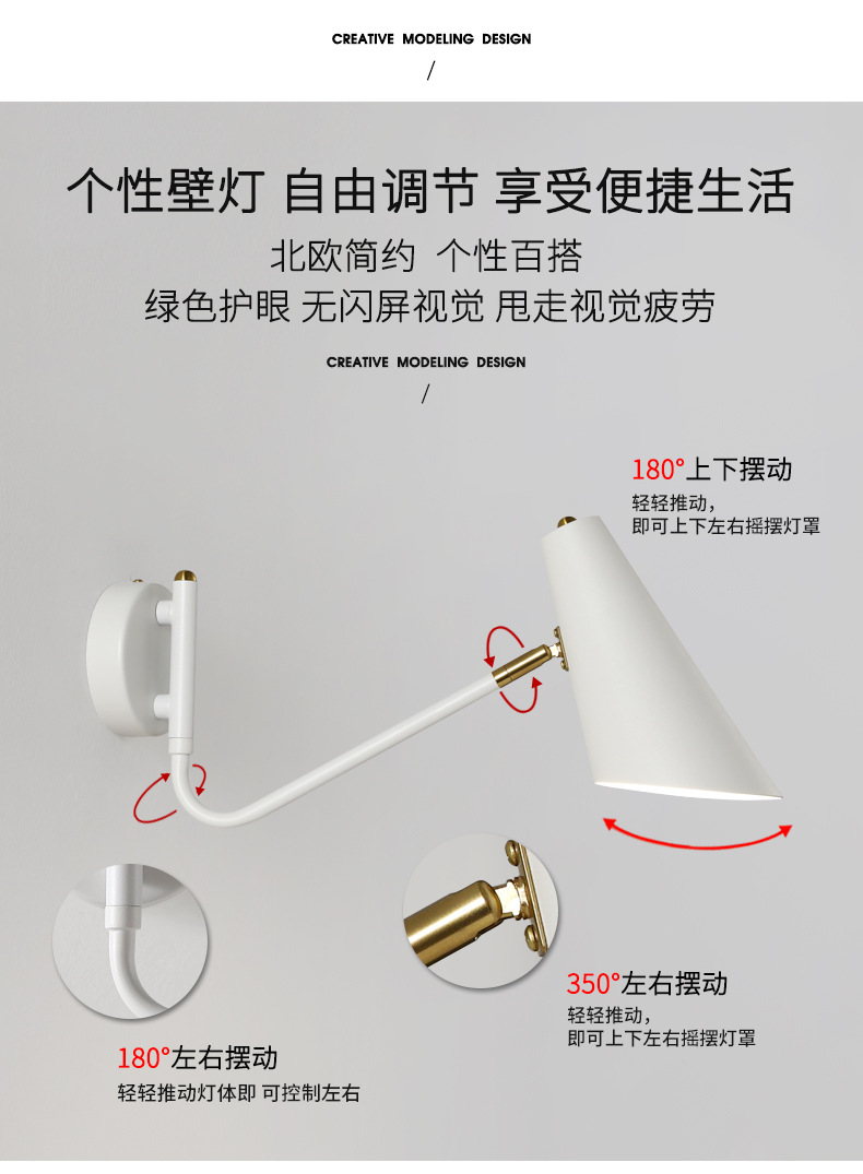 벽 램프 침실 머리맡 램프 크리 에이 티브 북유럽 스위치 책상 눈 보호 벽 램프 빛 럭셔리 스윙 암 회전 흰색 벽 램프