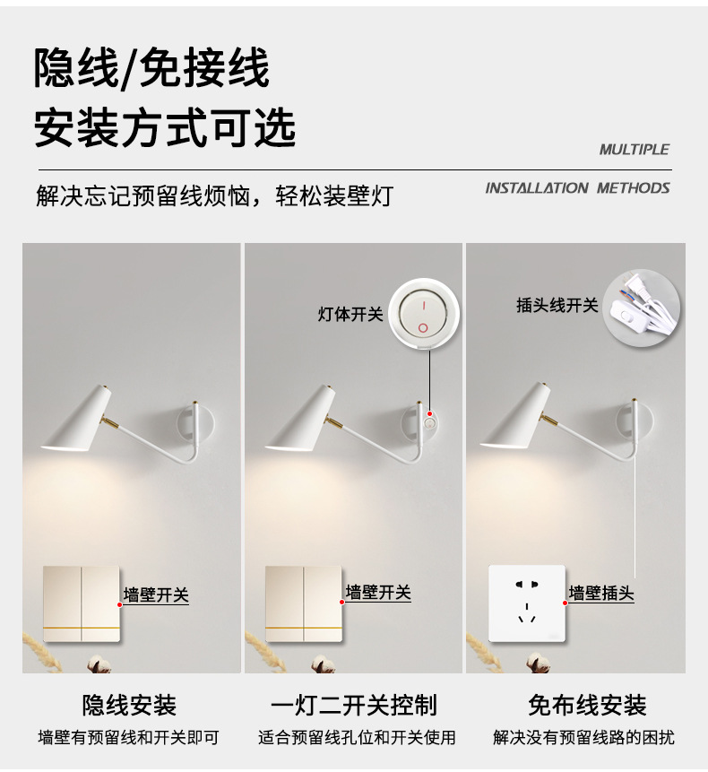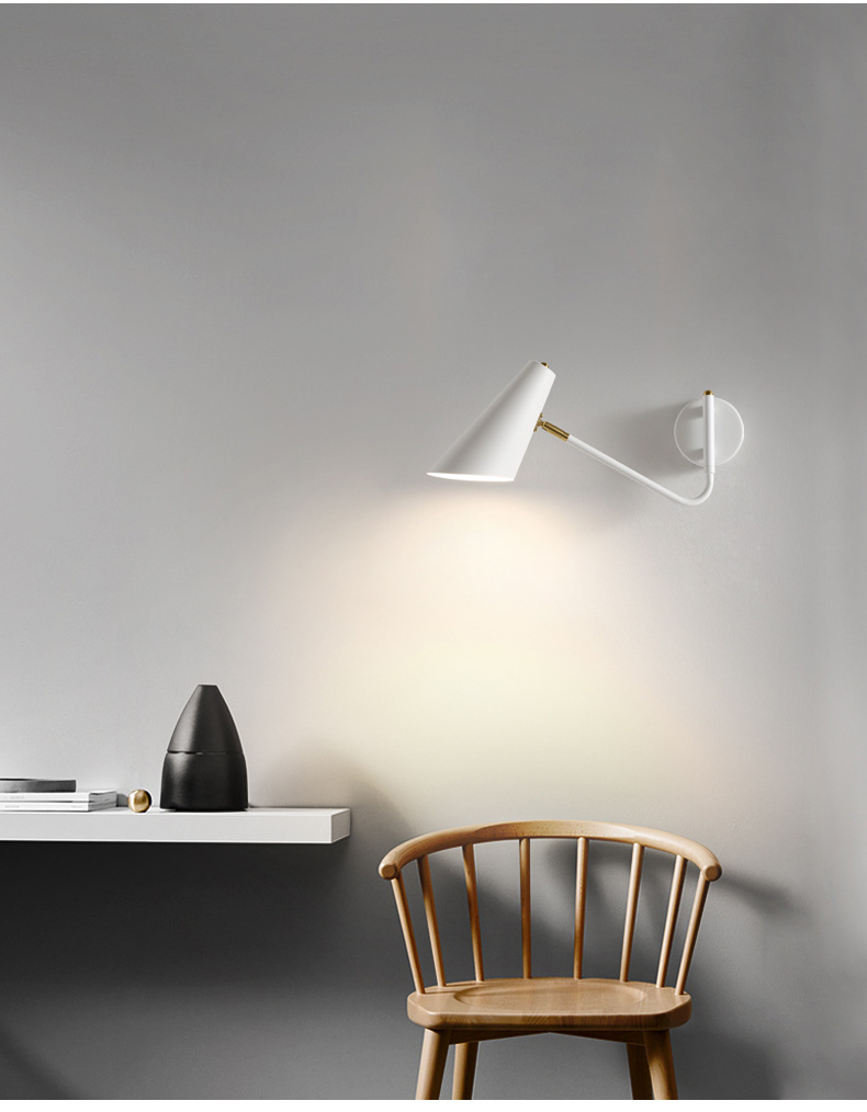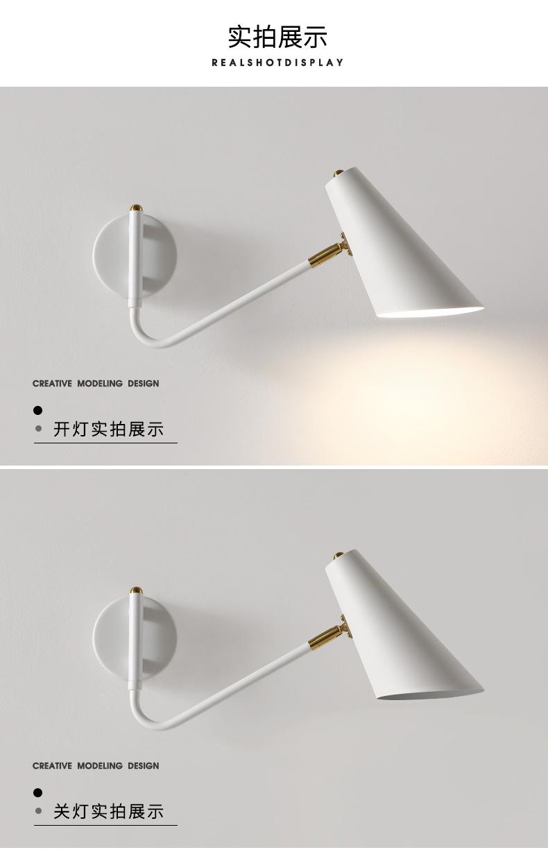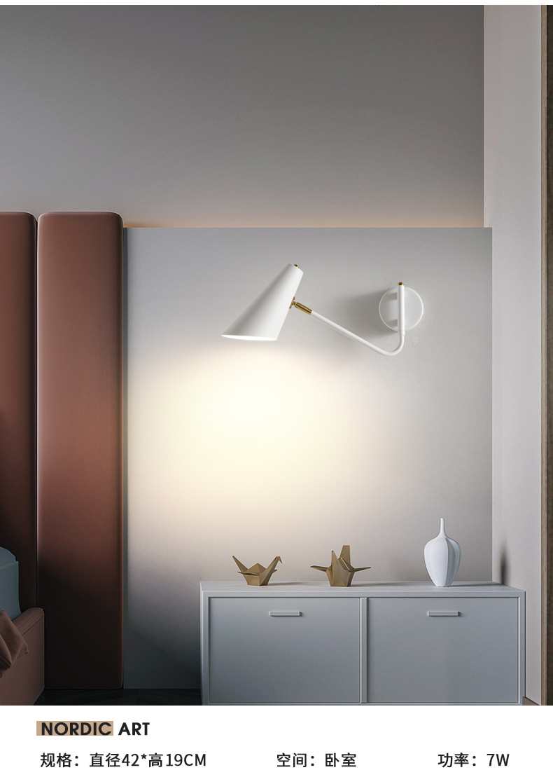 벽 램프 침실 머리맡 램프 크리 에이 티브 북유럽 스위치 책상 눈 보호 벽 램프 빛 럭셔리 스윙 암 회전 흰색 벽 램프