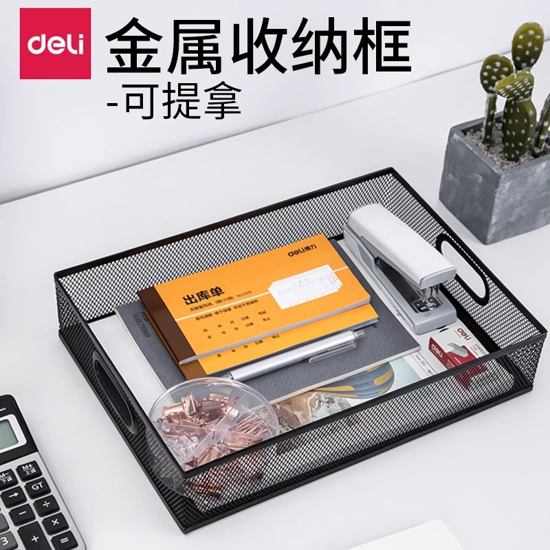 델리 79080 금속 메쉬 문서 바구니 A4 파일 프레임 저장 상자 데스크탑 데이터 정렬 바