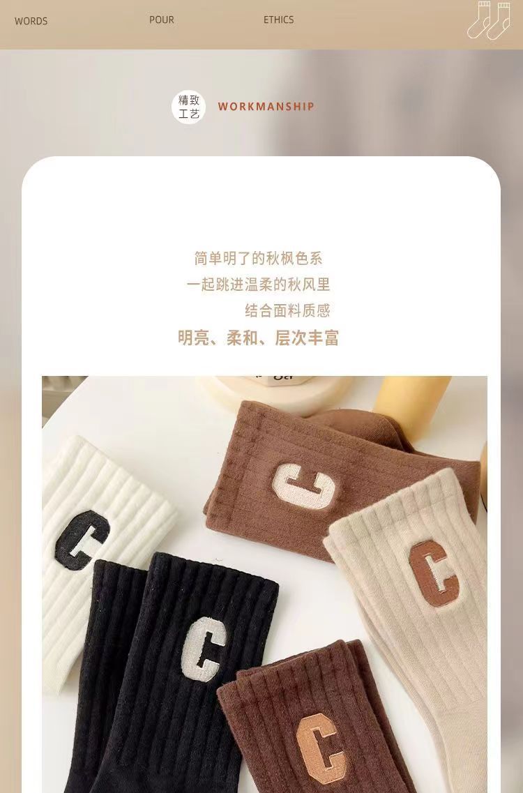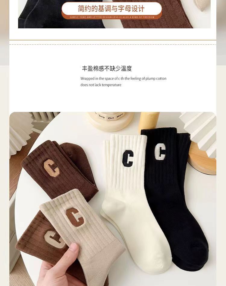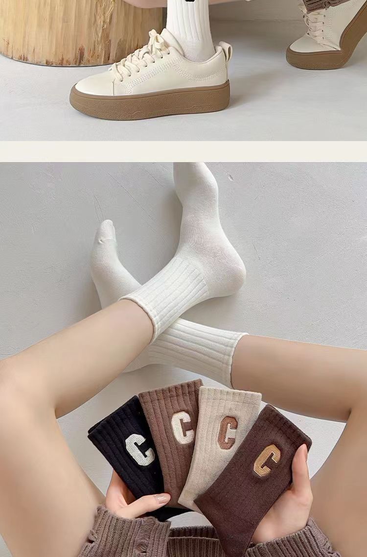 • 편지 C 미드 튜브 양말