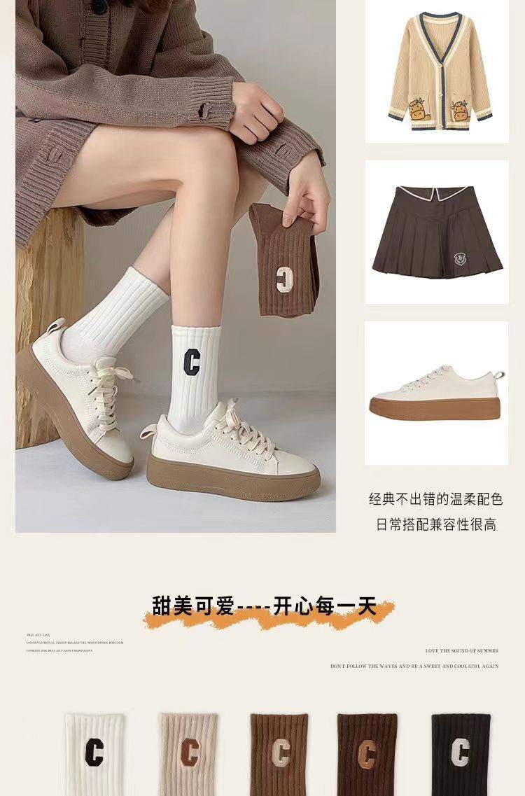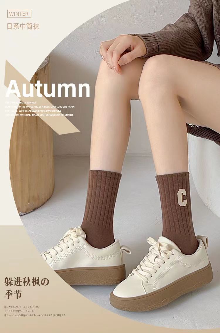 편지 양말 여성용 미드 튜브 양말 가을 순면 봄과 가을 조수 메쉬 적외선 착용 스포츠 하이 튜브 스타킹