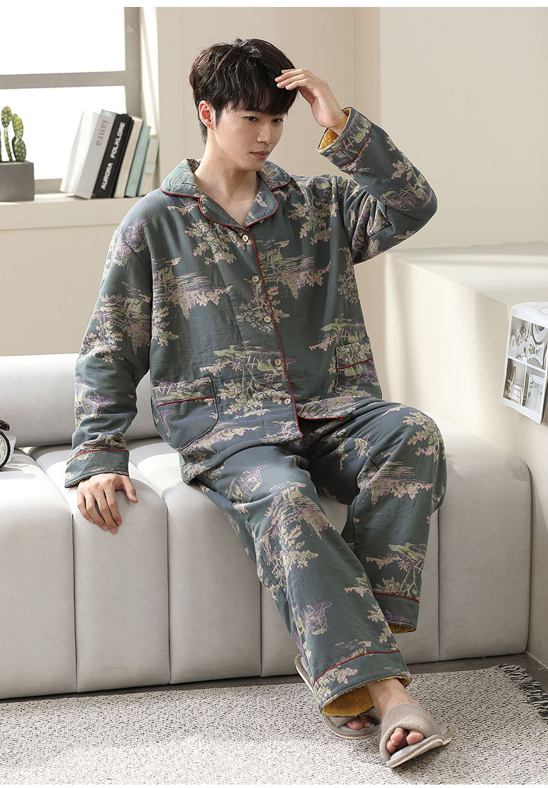 봄과 여름 새로운 여성 남성의 홈 옷 커플 세트 면 얇은 플러스 사이즈 빨간색 외부 잠옷 도매