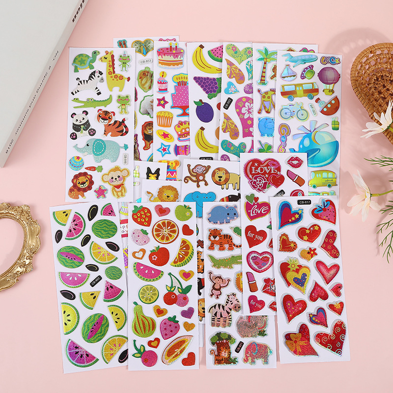 사용자 정의 만화 물 컵 손 계정 스티커 과일 작은 동물 색상 인쇄 EVA 스테레오 손 계정 거품 스티커 어린이 장난감스토어 가기