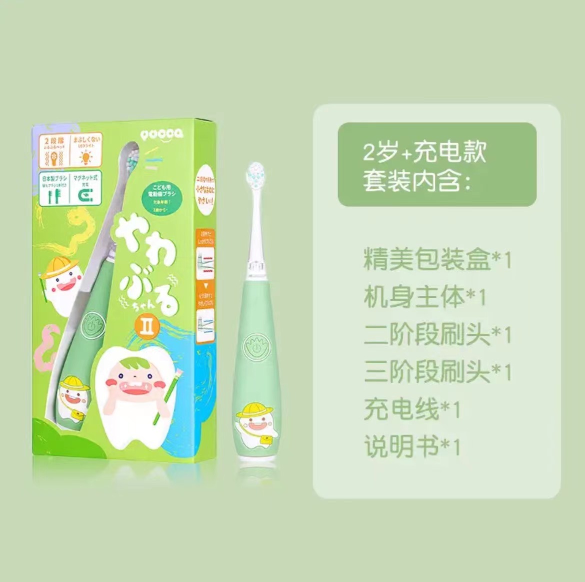 새로운 유카 어린이 전동 칫솔 충전식 3-6-12 세 아기의 부드러운 모발 교체 칫솔 헤드스토어 가기