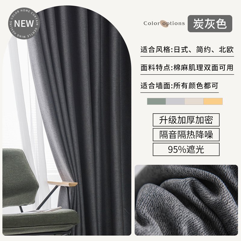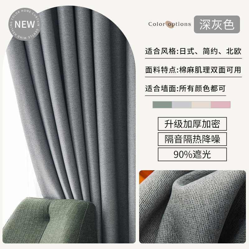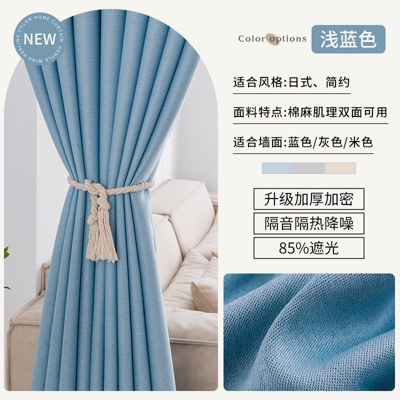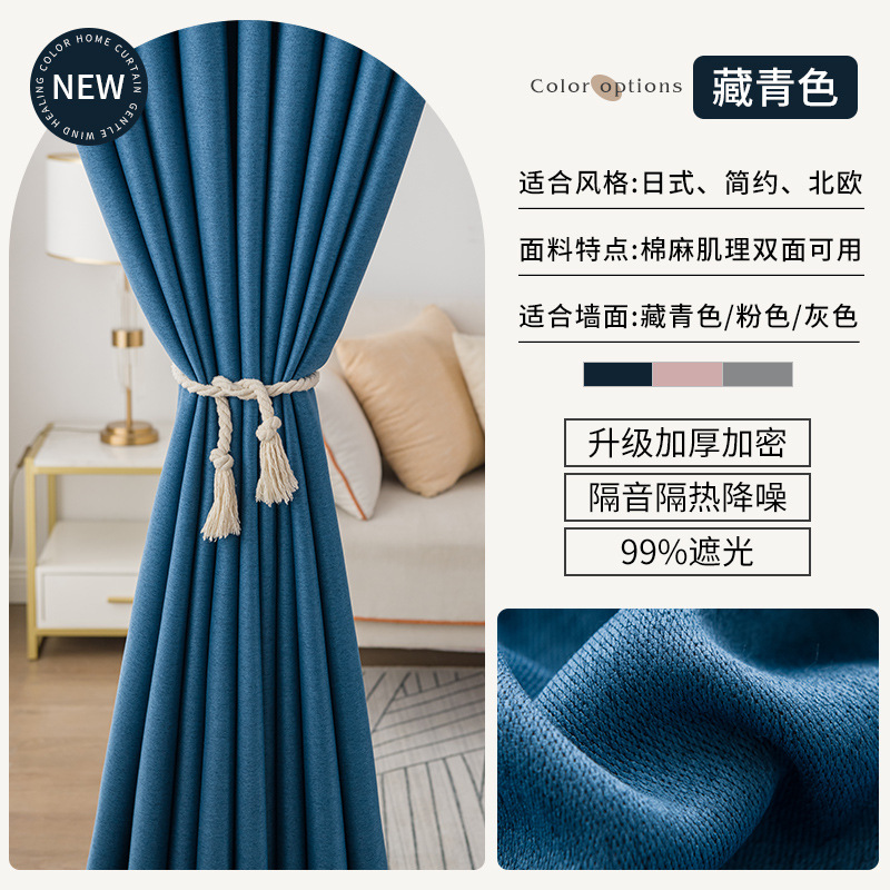 크림 양면 대마 현대 단색 면 대마 커튼 완성 된 열 및 방음 차광 커튼 패브릭 거실 및 침실 용스토어 가기