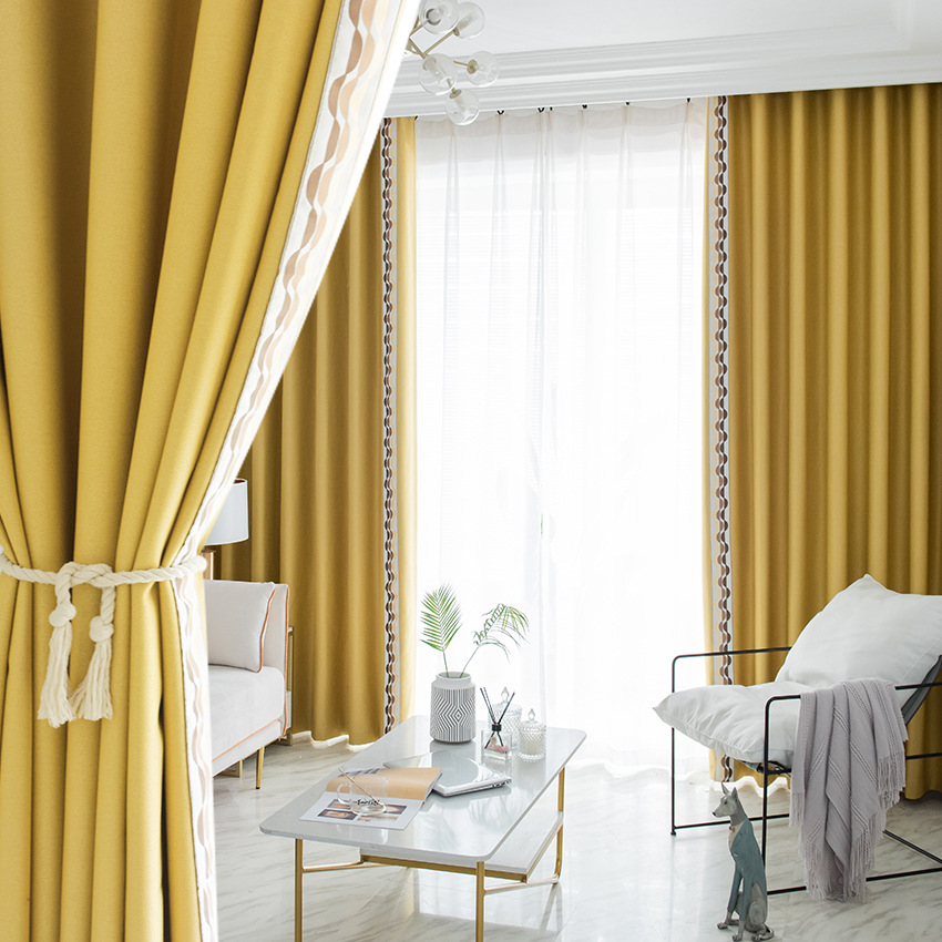 크림 양면 대마 현대 단색 면 대마 커튼 완성 된 열 및 방음 차광 커튼 패브릭 거실 및 침실 용