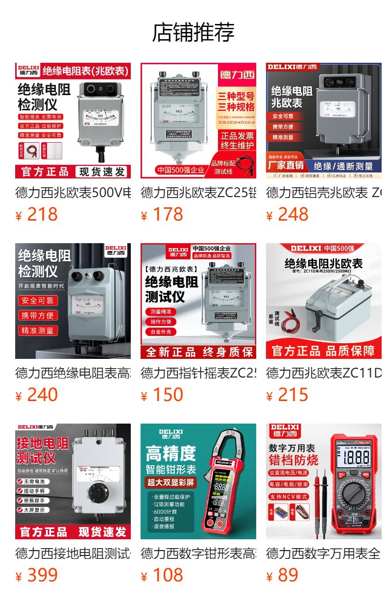 Delixi MEGOHMMETER ZC-7 알루미늄 케이스 포인터 간섭 방지 흔들림 테이블 500V 핸드 크랭크 합금 절연 저항 테이블스토어 가기