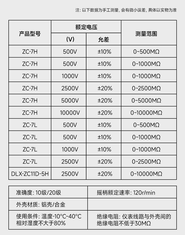 Delixi MEGOHMMETER ZC-7 알루미늄 케이스 포인터 간섭 방지 흔들림 테이블 500V 핸드 크랭크 합금 절연 저항 테이블