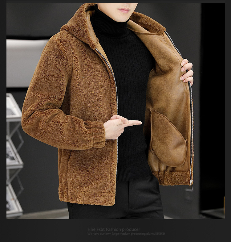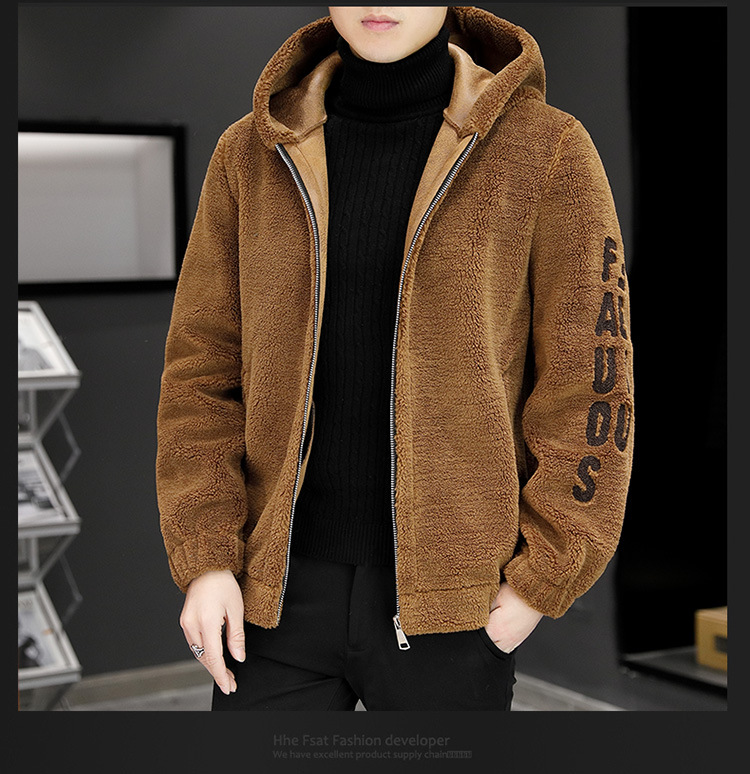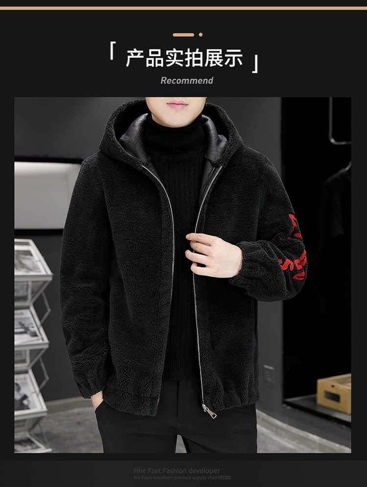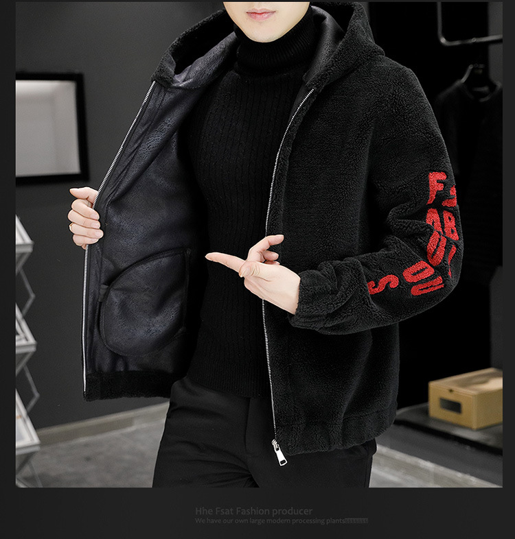 남자의 공급 체인 캐시미어 가위 후드 모직 재킷 기모 두꺼운 모피 원피스 남성 자수 가디건 재킷