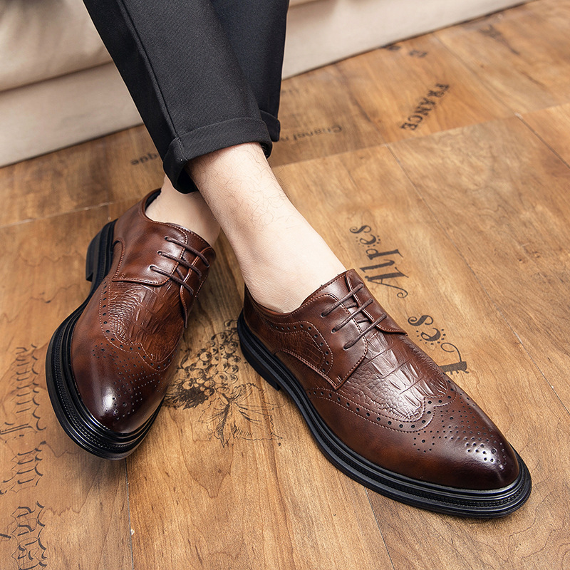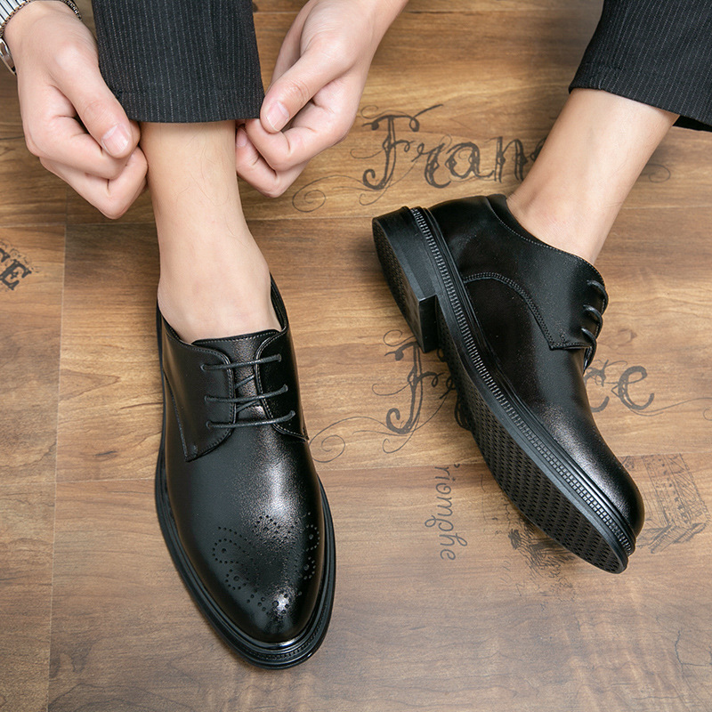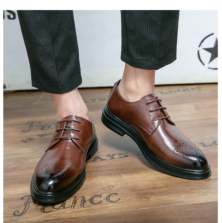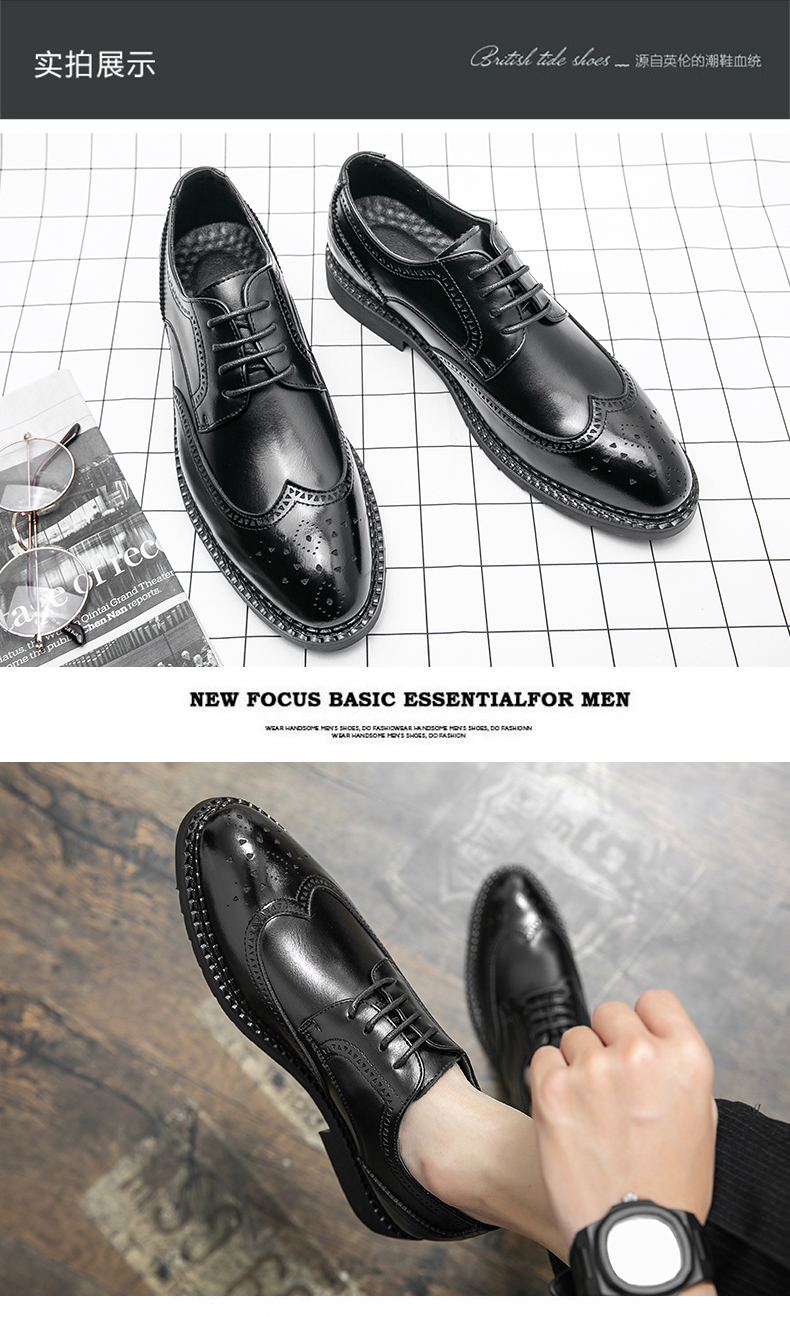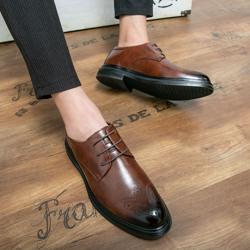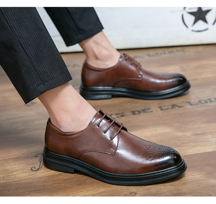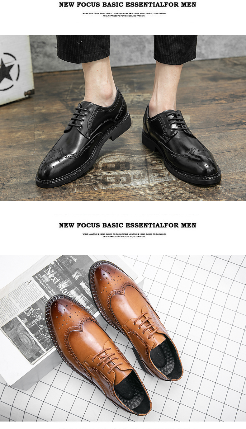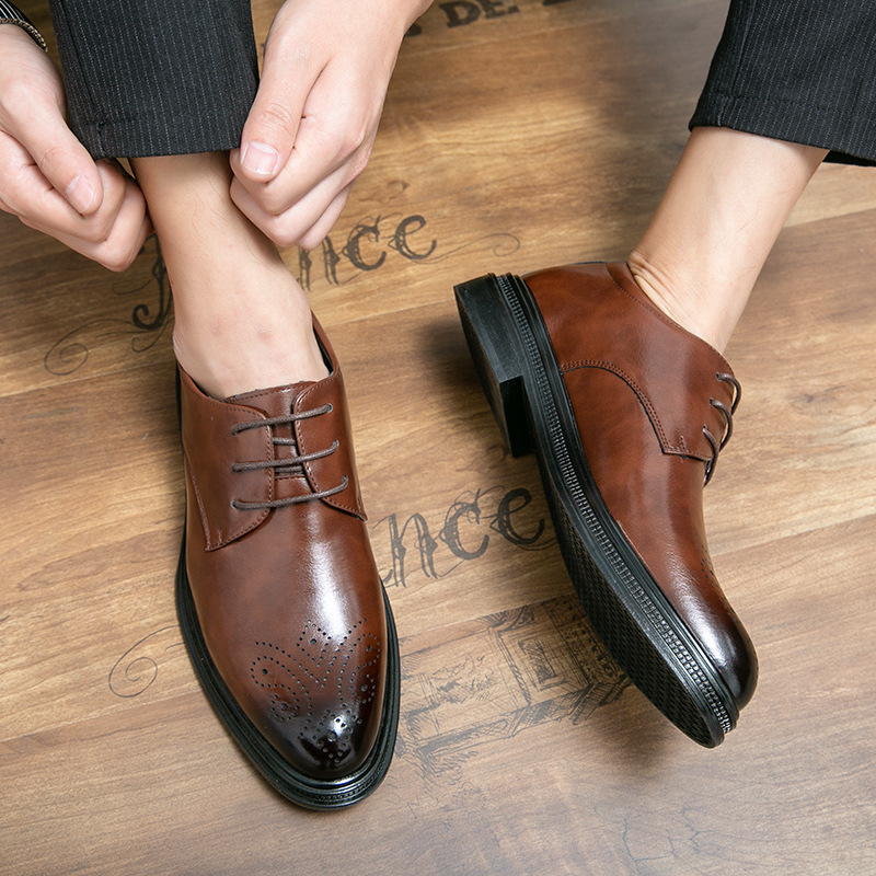 브록 가죽 신발 남자의 조각 영국 스타일 비즈니스 원피스 캐주얼 높이 증가 스타일리스트 웨딩 신랑 신발 다크 브라운