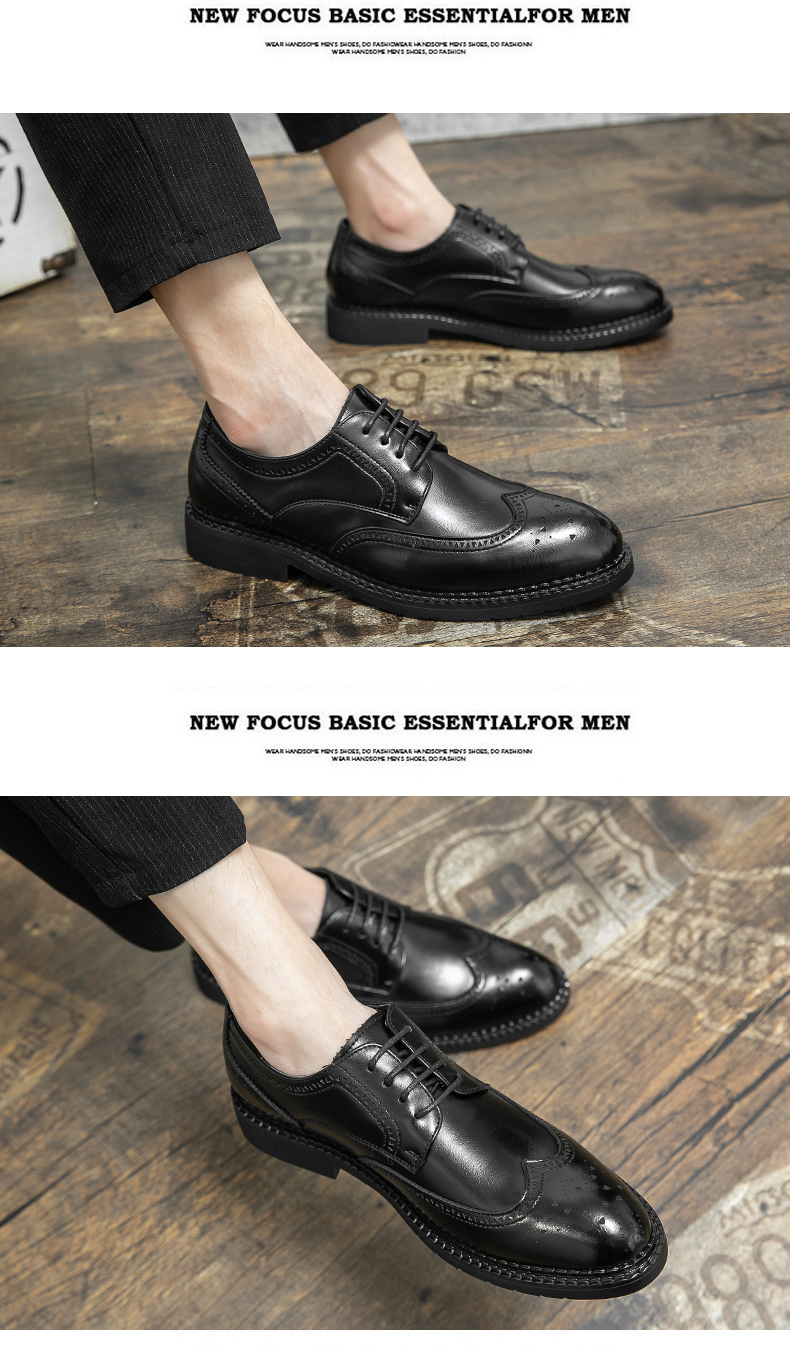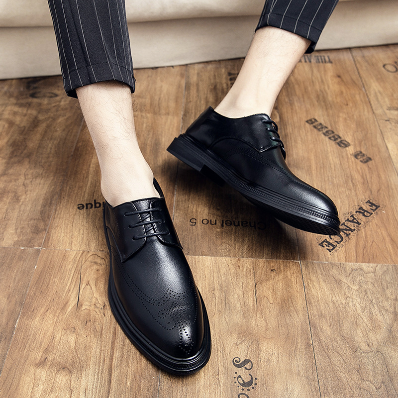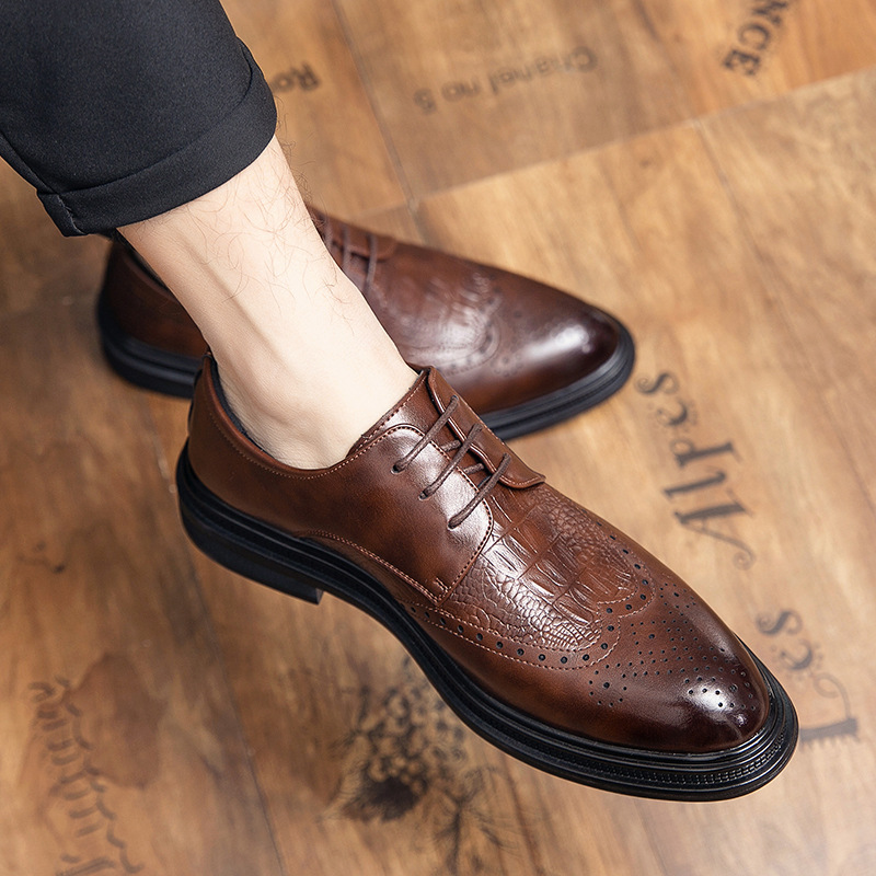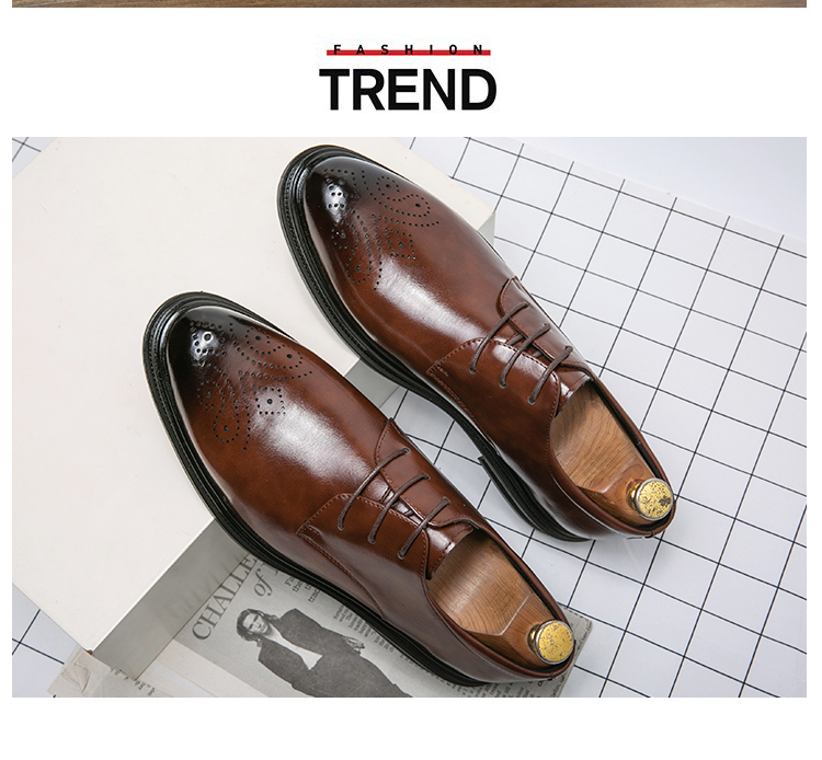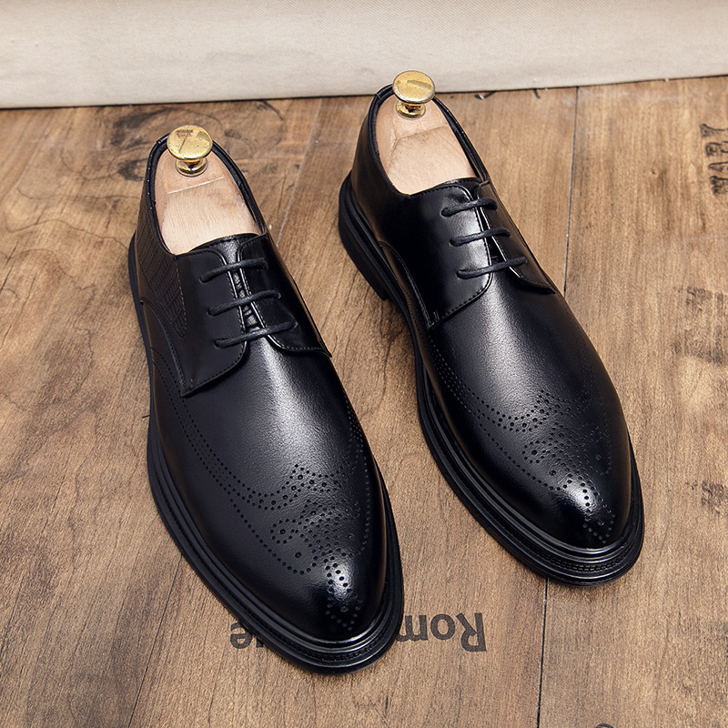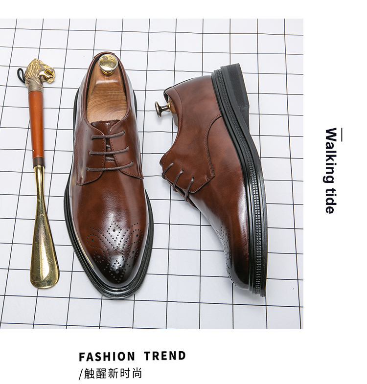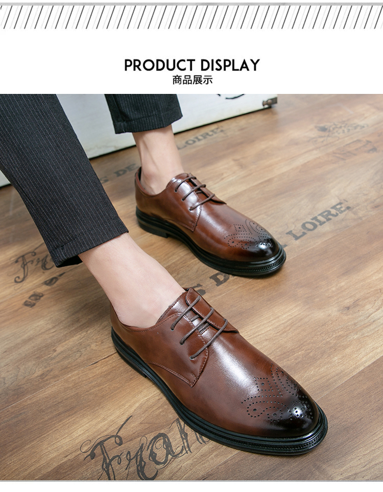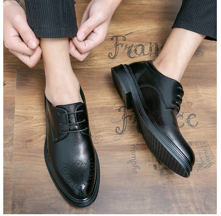 브록 가죽 신발 남자의 조각 영국 스타일 비즈니스 원피스 캐주얼 높이 증가 스타일리스트 웨딩 신랑 신발 다크 브라운