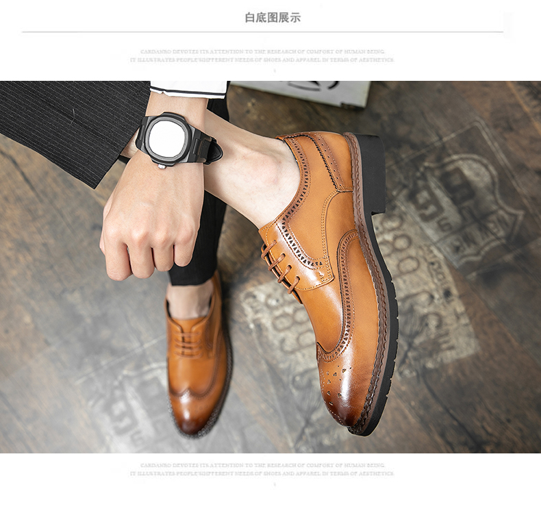 브록 가죽 신발 남자의 조각 영국 스타일 비즈니스 원피스 캐주얼 높이 증가 스타일리스트 웨딩 신랑 신발 다크 브라운스토어 가기