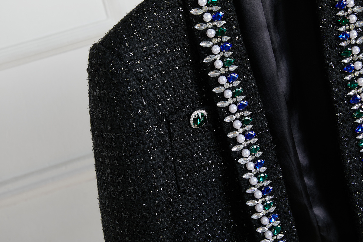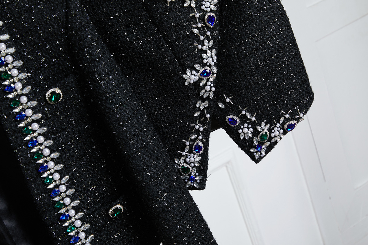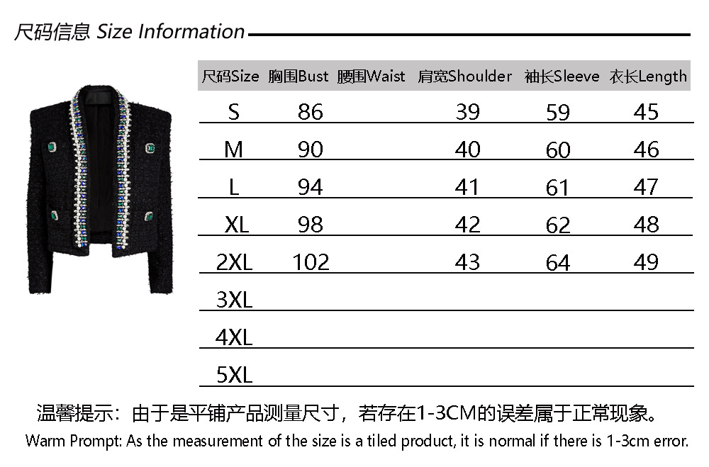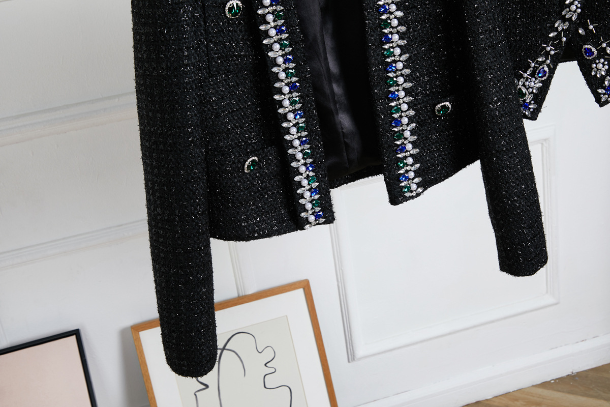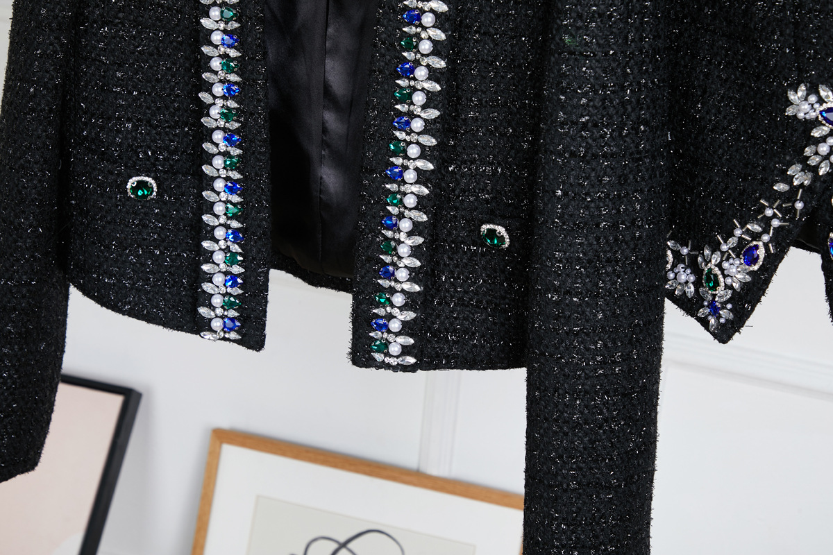 Spot 2025 유럽과 미국의 스타 패션 새로운 중공업 다이아몬드 구슬 장식 녹색 과일 칼라 짧은 모직 재킷 여성용스토어 가기