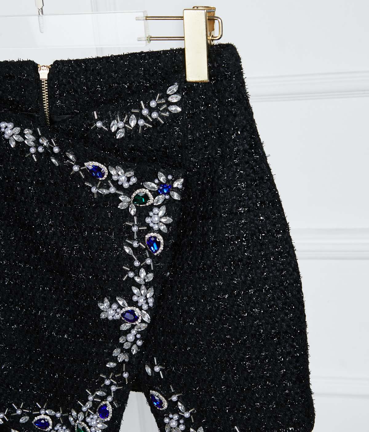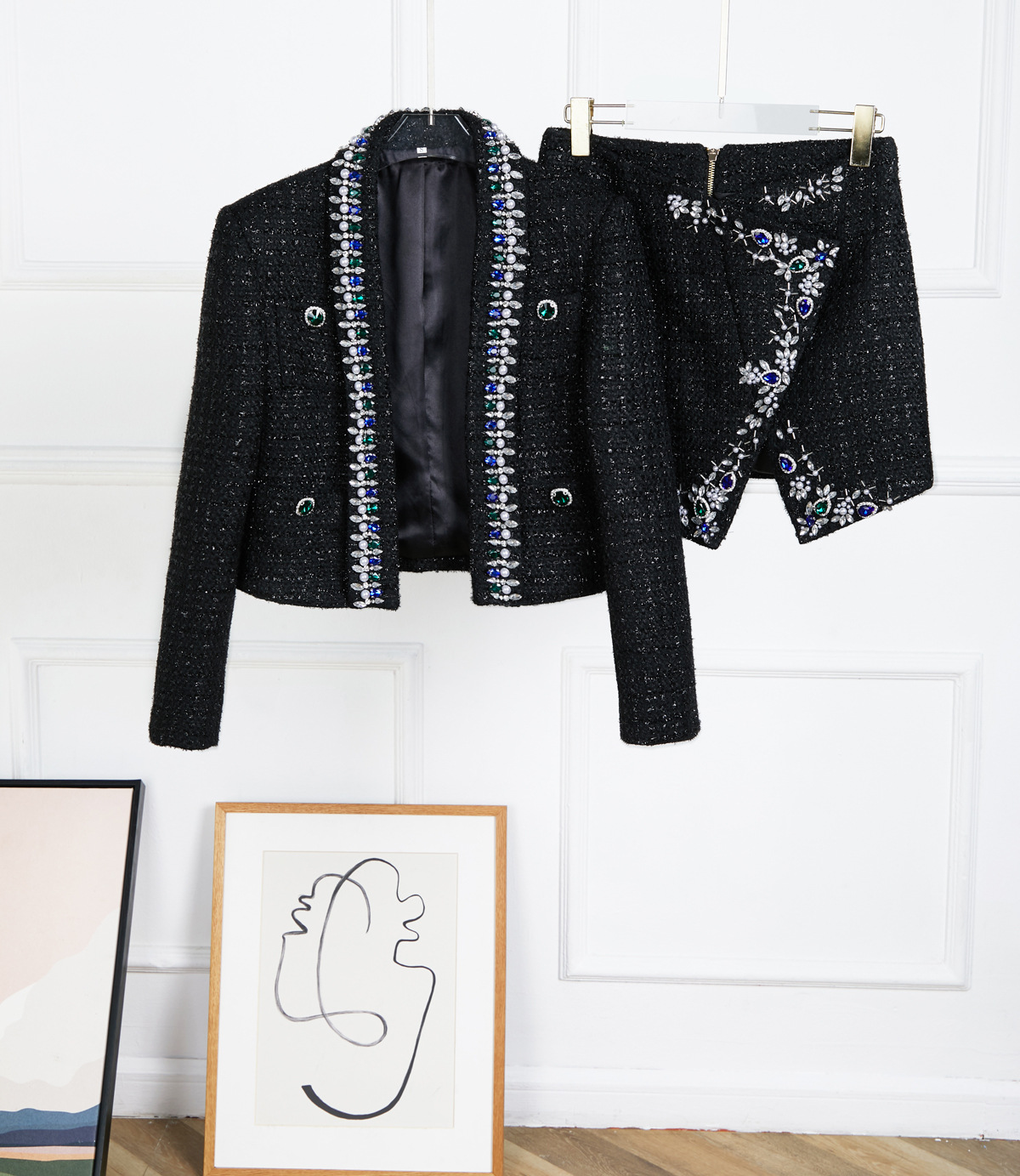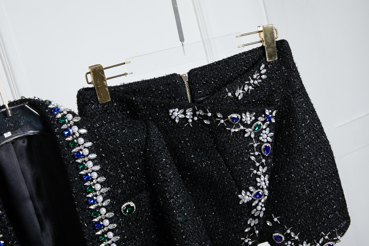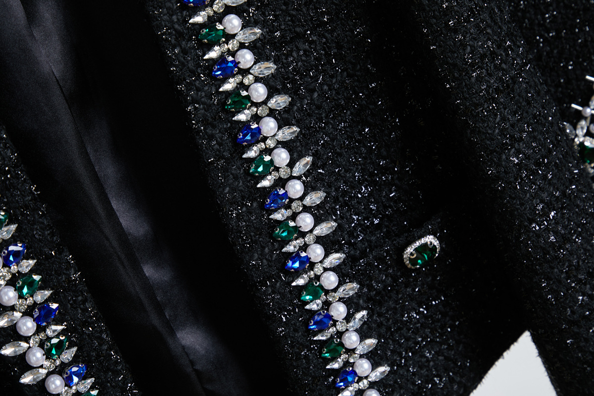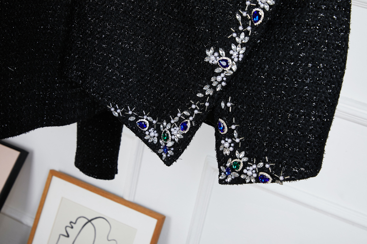 Spot 2025 유럽과 미국의 스타 패션 새로운 중공업 다이아몬드 구슬 장식 녹색 과일 칼라 짧은 모직 재킷 여성용스토어 가기