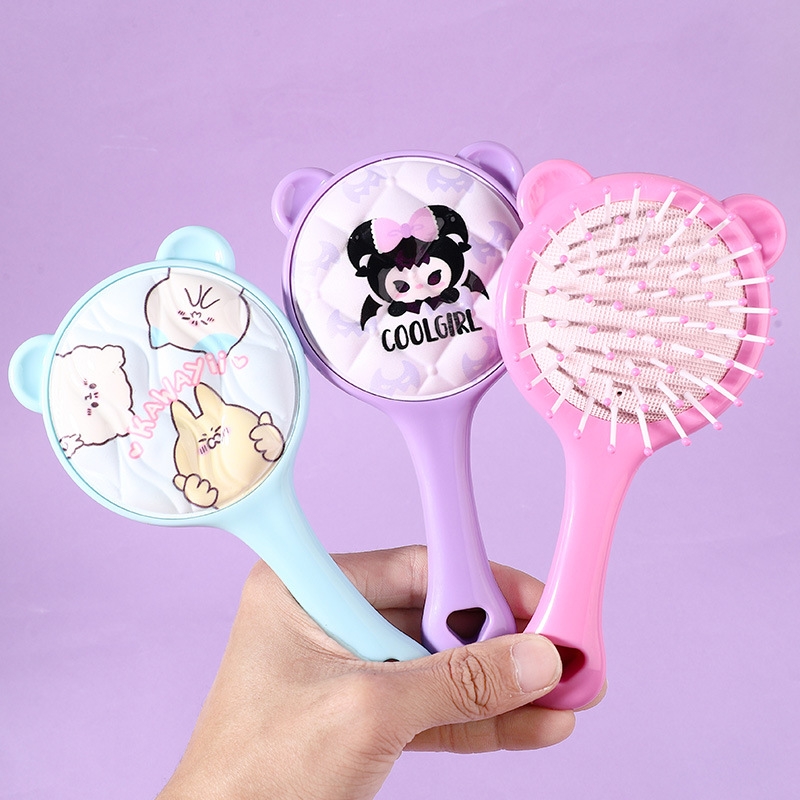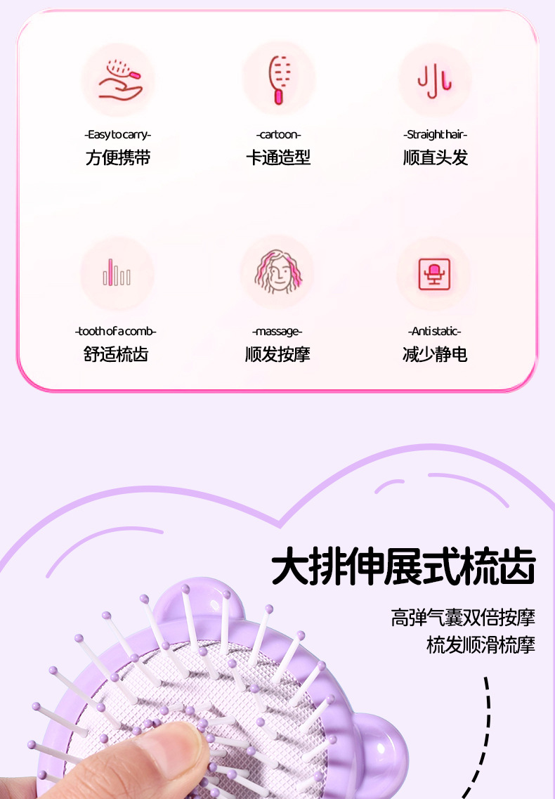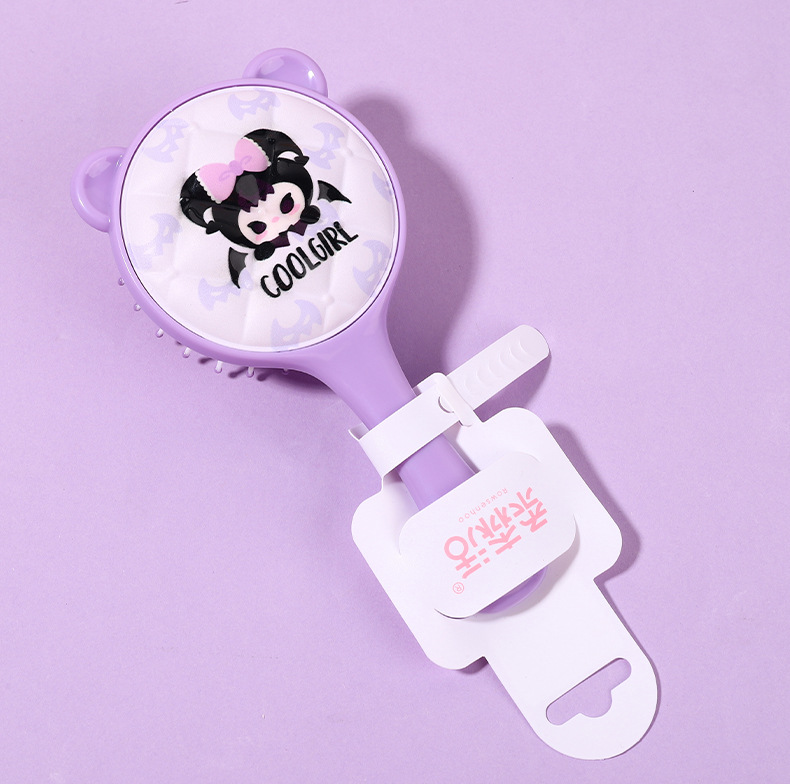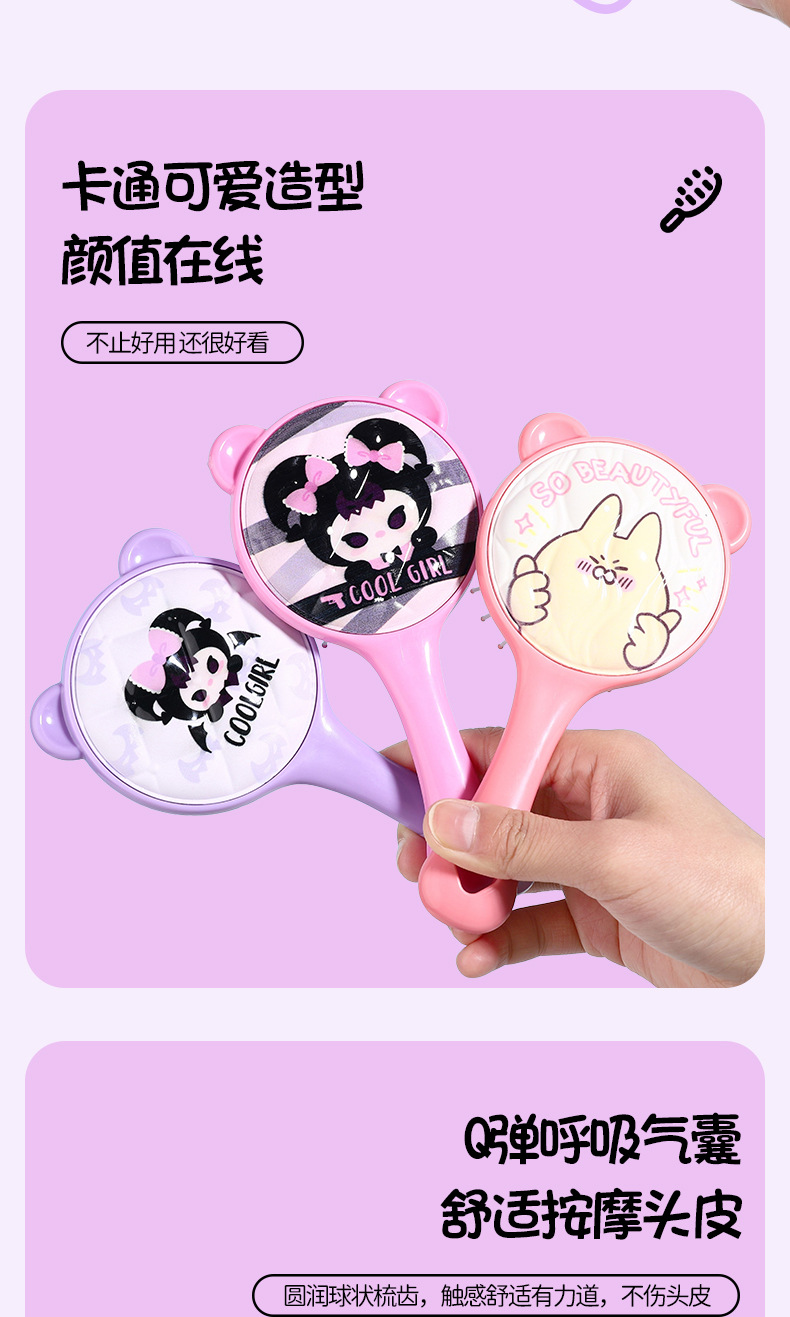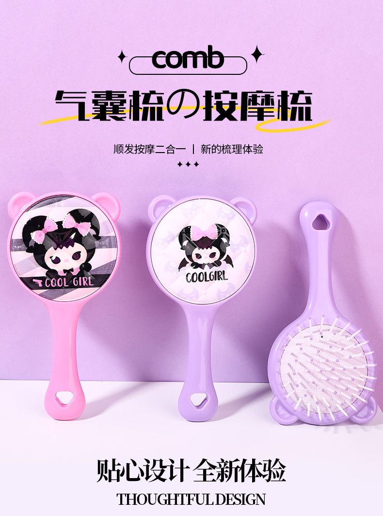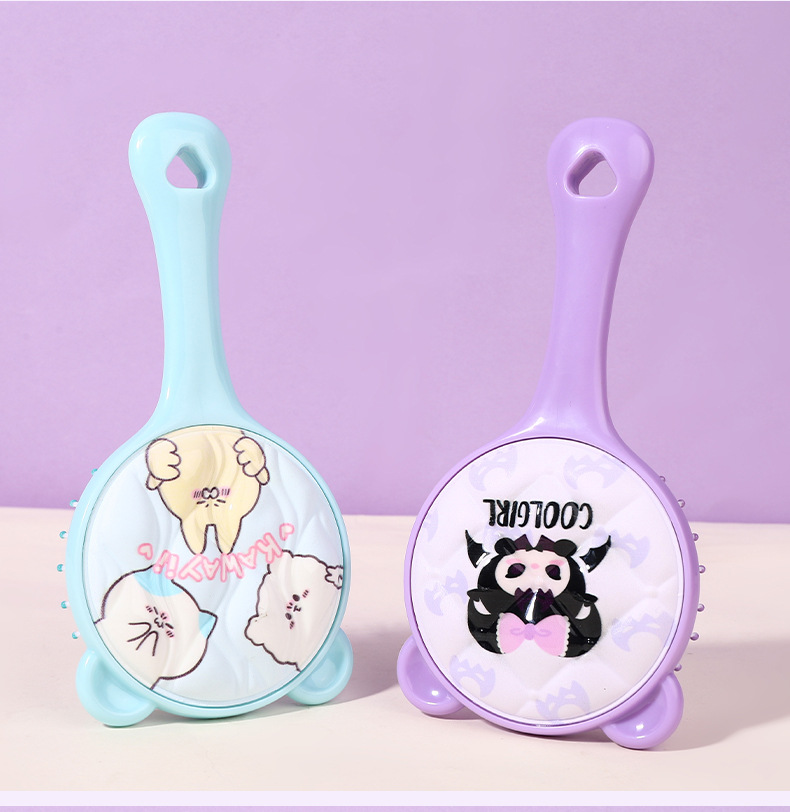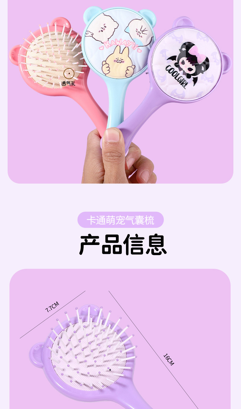 만화 투명 플래시 스퀘어 에어 쿠션 빗 귀여운 소녀 심장 긴 손잡이 에어백 마사지 빗을 걸 수 있습니다 플라스틱 빗스토어 가기