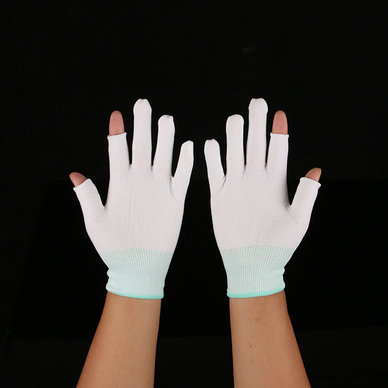 얇은 반 손가락 나일론 장갑 터치 스크린 내마모성 작업 미끄럼 방지 남성 및 여성 작업 통기성 전자 분류 차 따기 여름