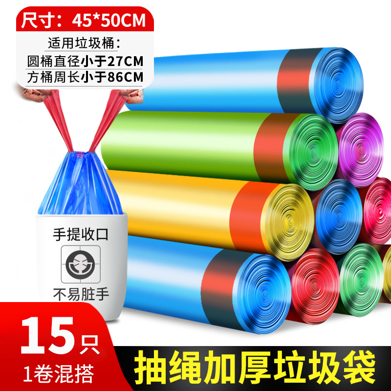 자동 밀봉 기능이 있는 가정용 끈 달린 쓰레기봉투, 손이 더러워지지 않는 휴대용 두꺼운 쓰레기봉투, 1개부터 도매 가능스토어 가기