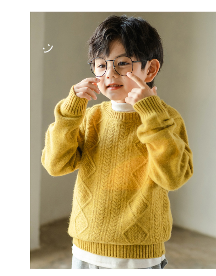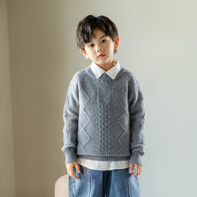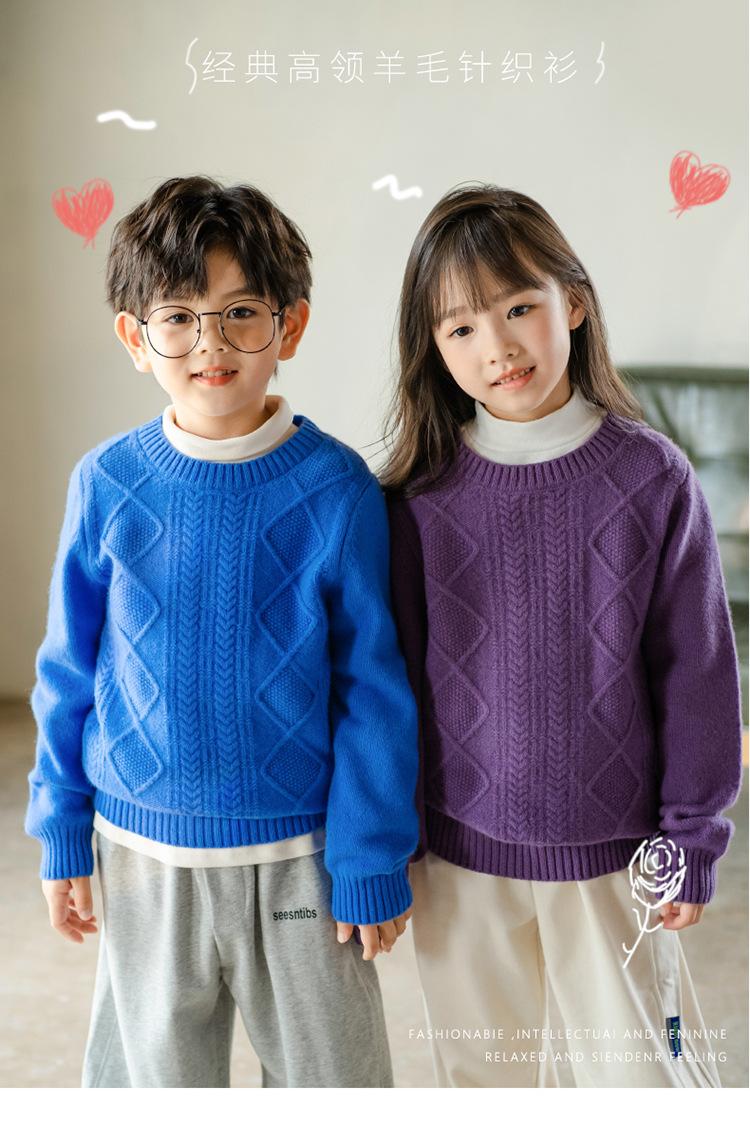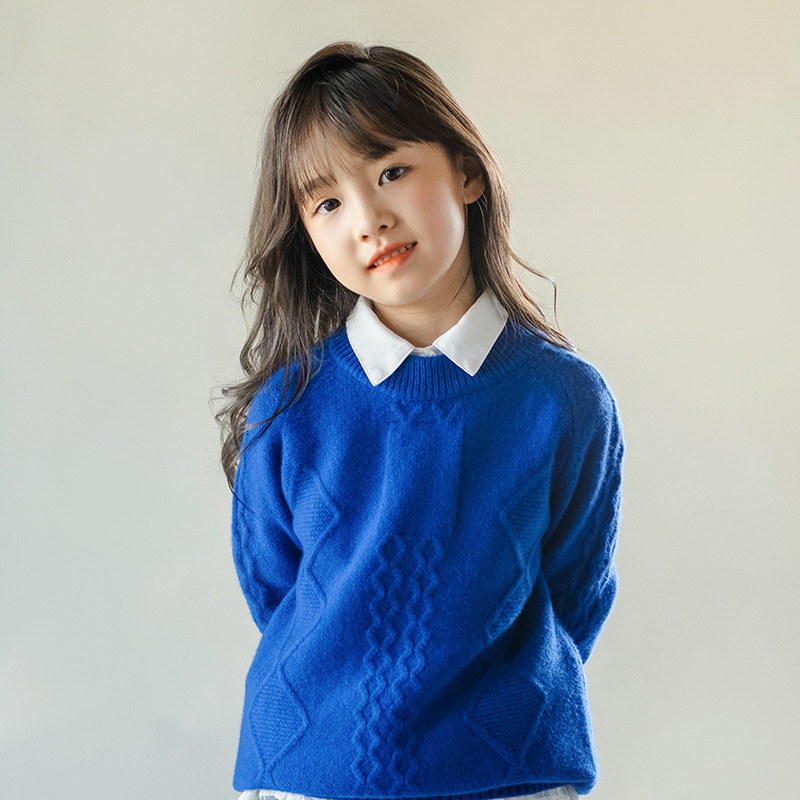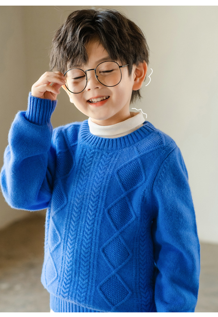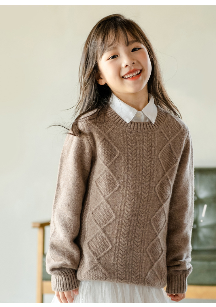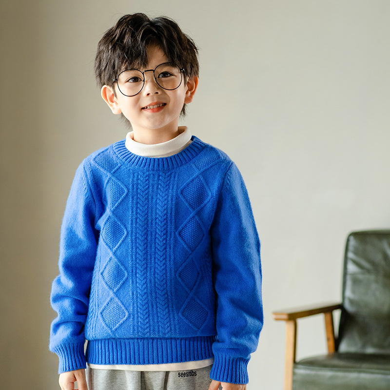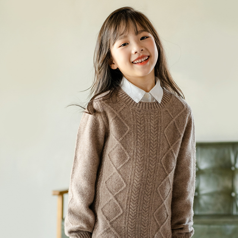 어린이 캐시미어 스웨터 소년과 소녀 스웨터 니트 베이스 셔츠 가을과 겨울 큰 어린이 다이아몬드 두꺼운 울 스웨터