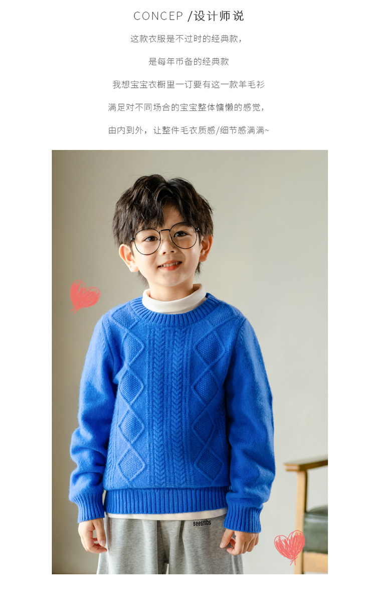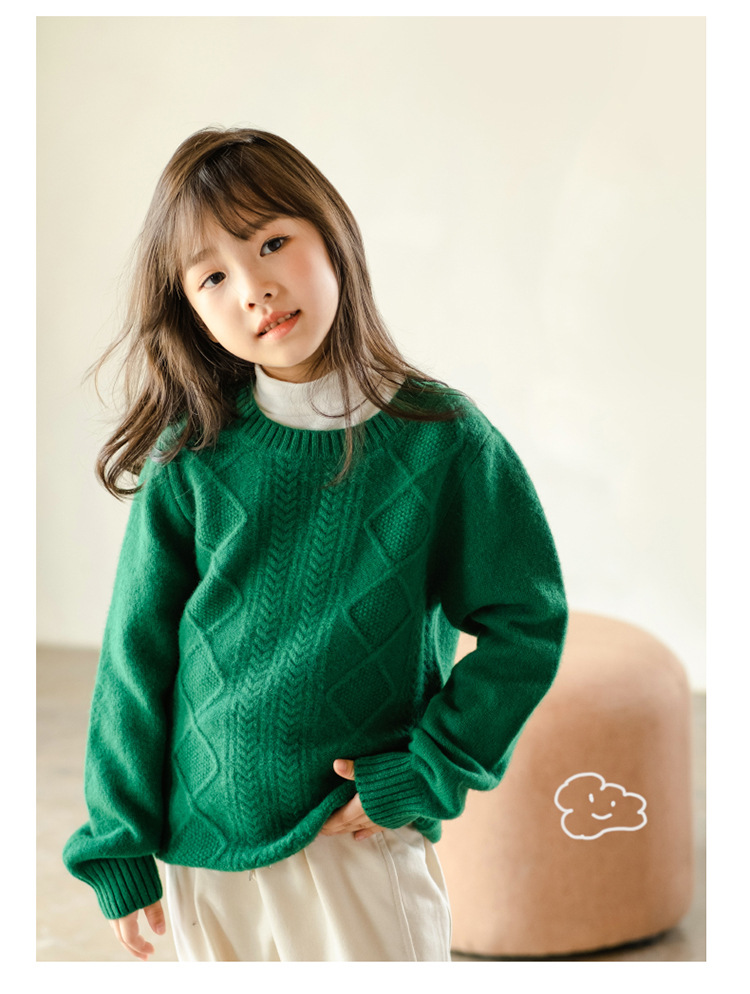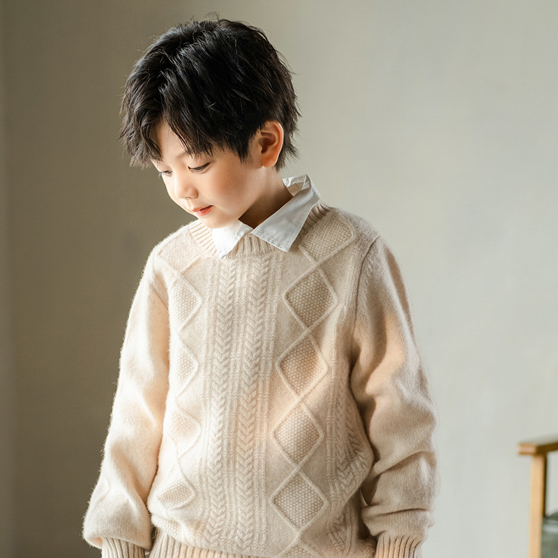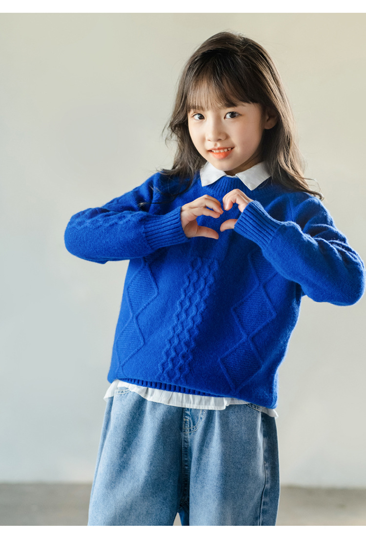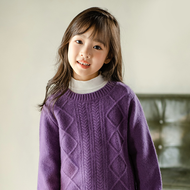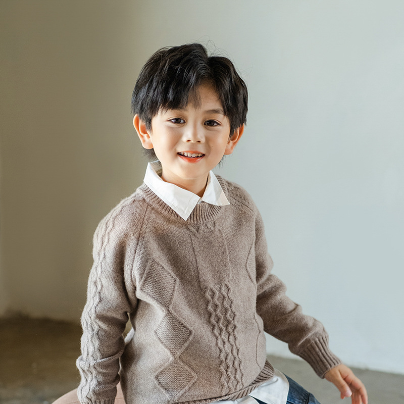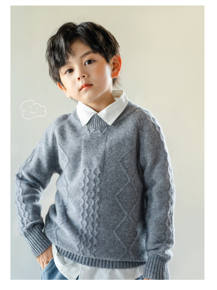 어린이 캐시미어 스웨터 소년과 소녀 스웨터 니트 베이스 셔츠 가을과 겨울 큰 어린이 다이아몬드 두꺼운 울 스웨터