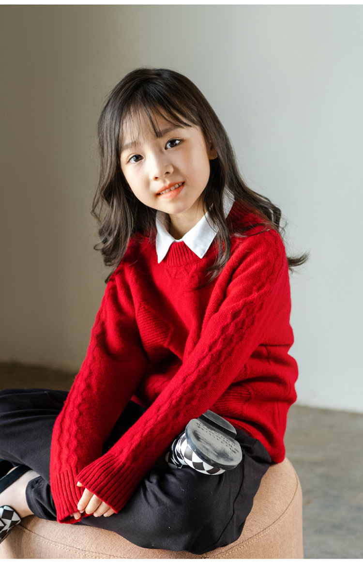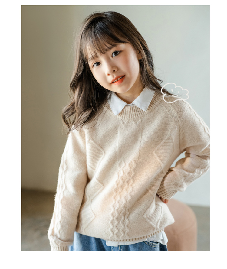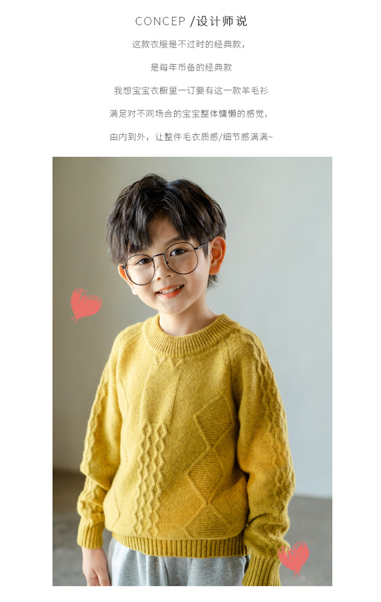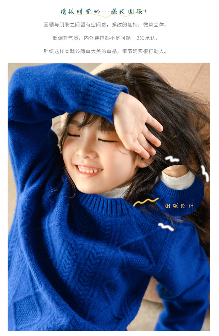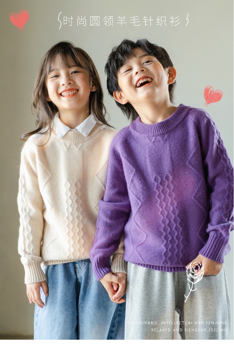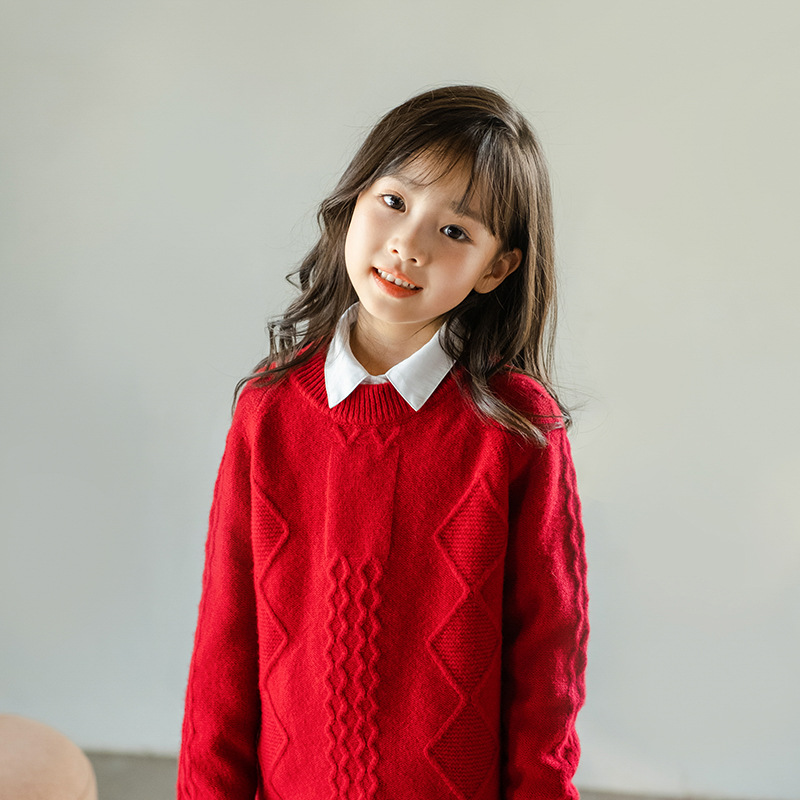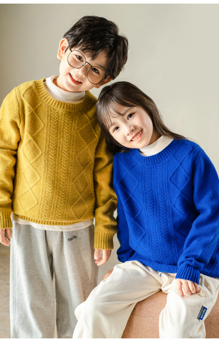 어린이 캐시미어 스웨터 소년과 소녀 스웨터 니트 베이스 셔츠 가을과 겨울 큰 어린이 다이아몬드 두꺼운 울 스웨터