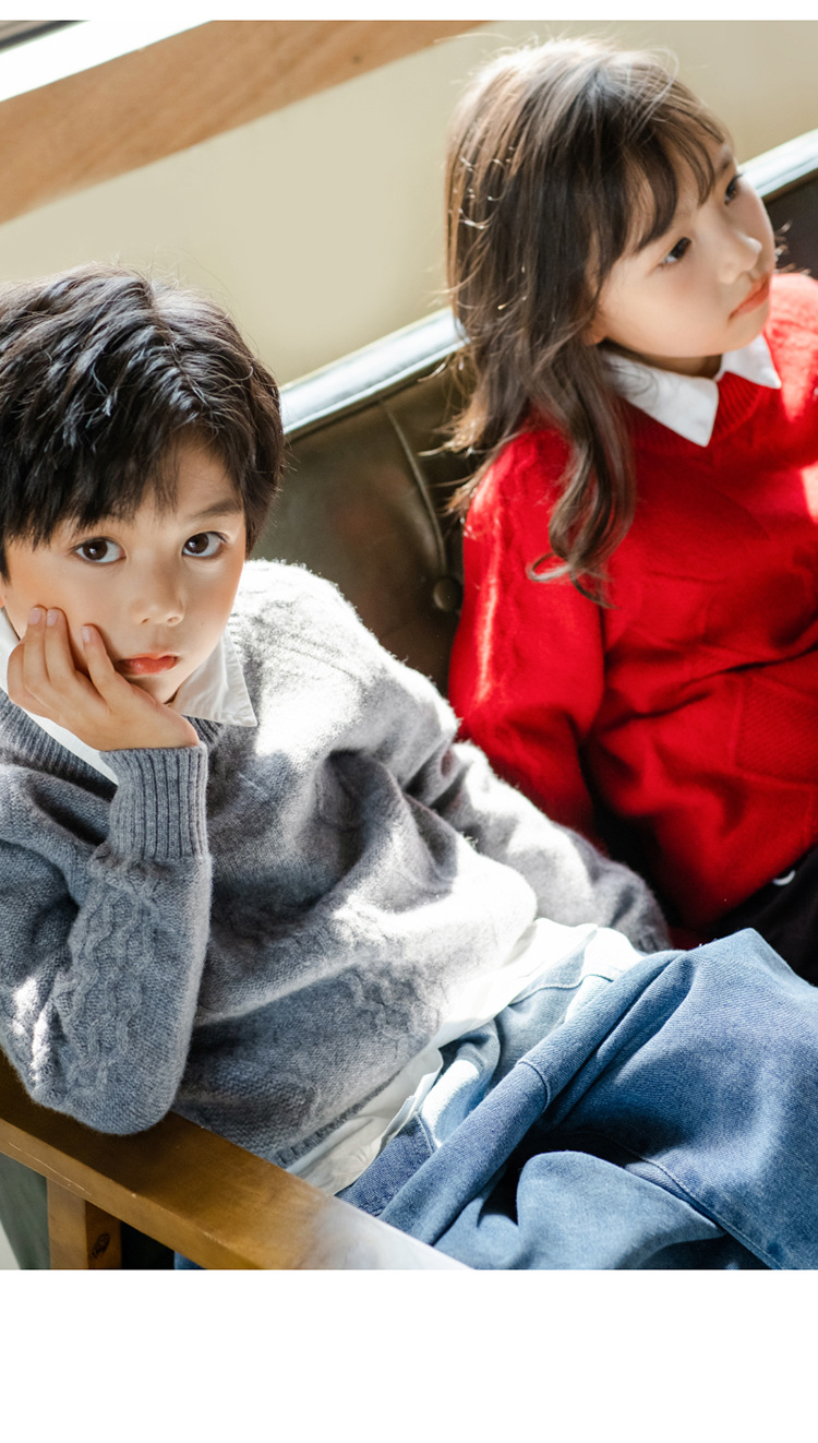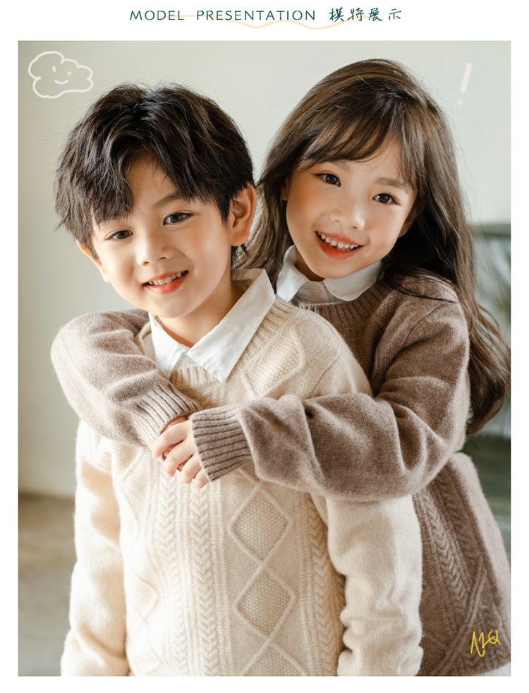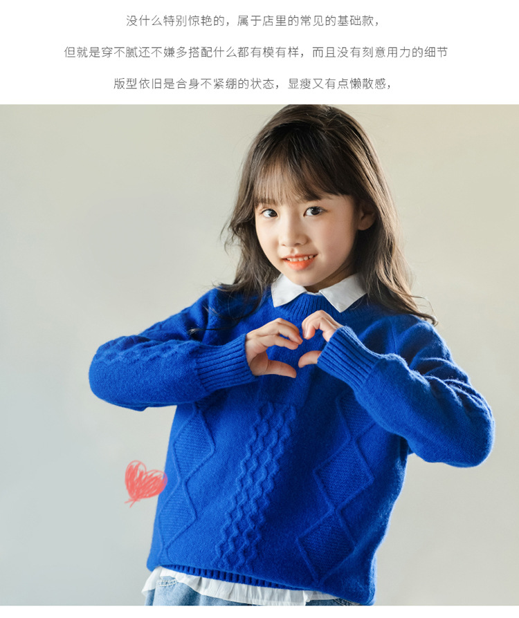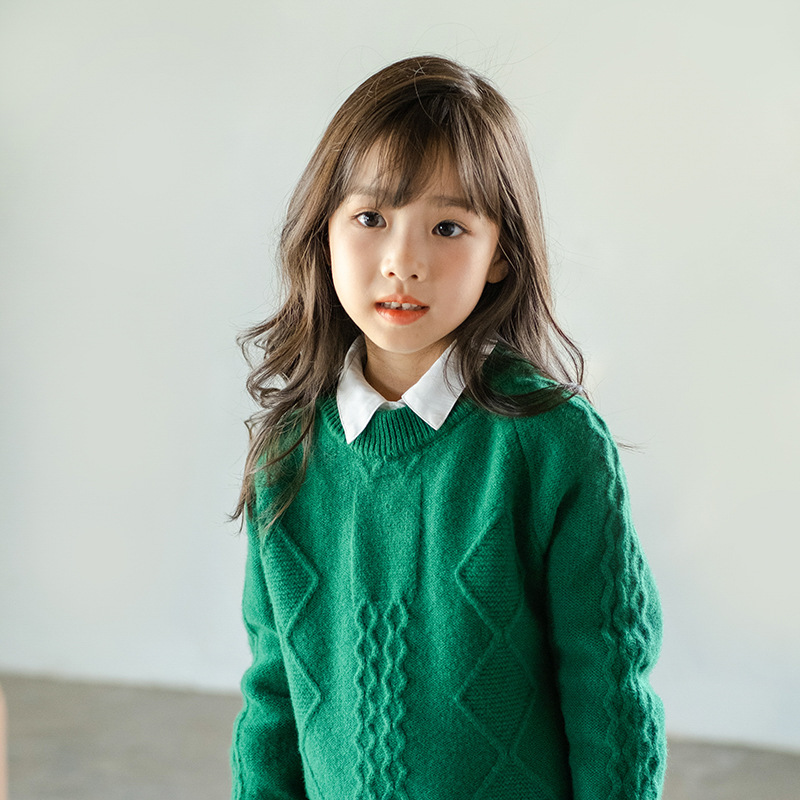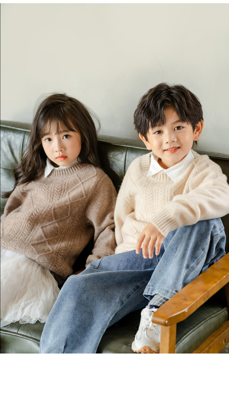어린이 캐시미어 스웨터 소년과 소녀 스웨터 니트 베이스 셔츠 가을과 겨울 큰 어린이 다이아몬드 두꺼운 울 스웨터스토어 가기