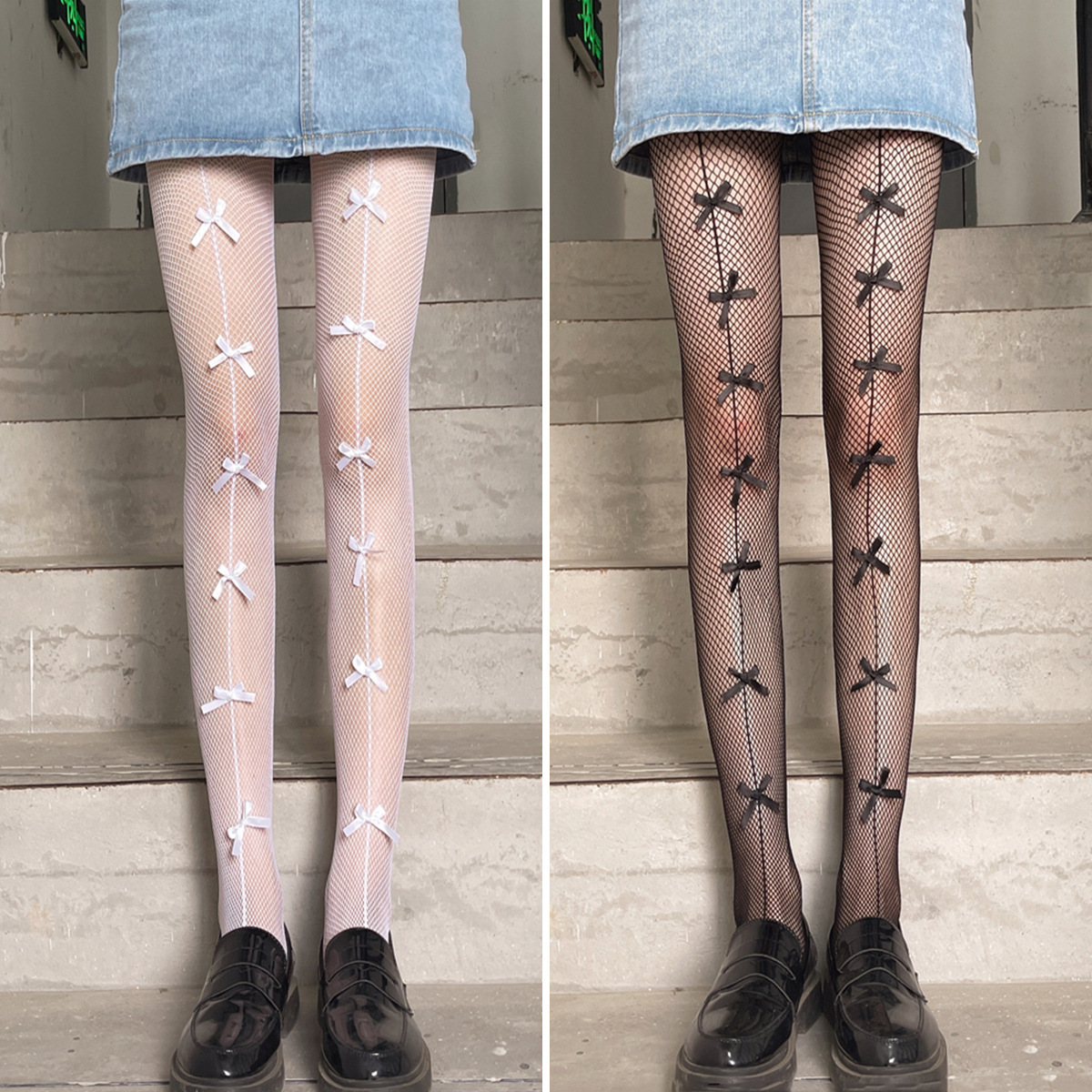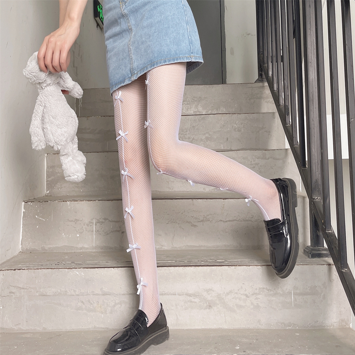 JK 활 망사 스타킹 여자의 얇은 여름 섹시한 로리 중공 다리 긴 튜브 바닥 검은 실크 팬티 스타킹