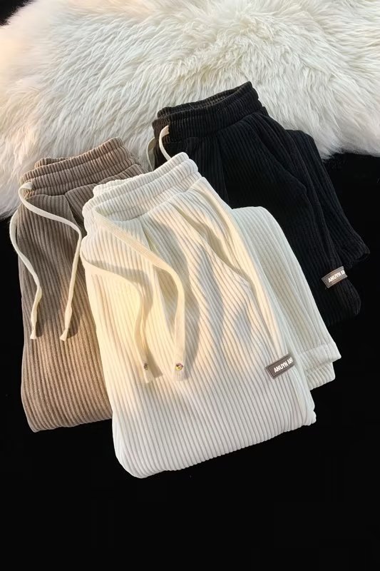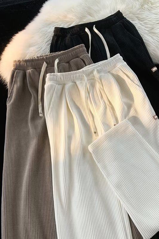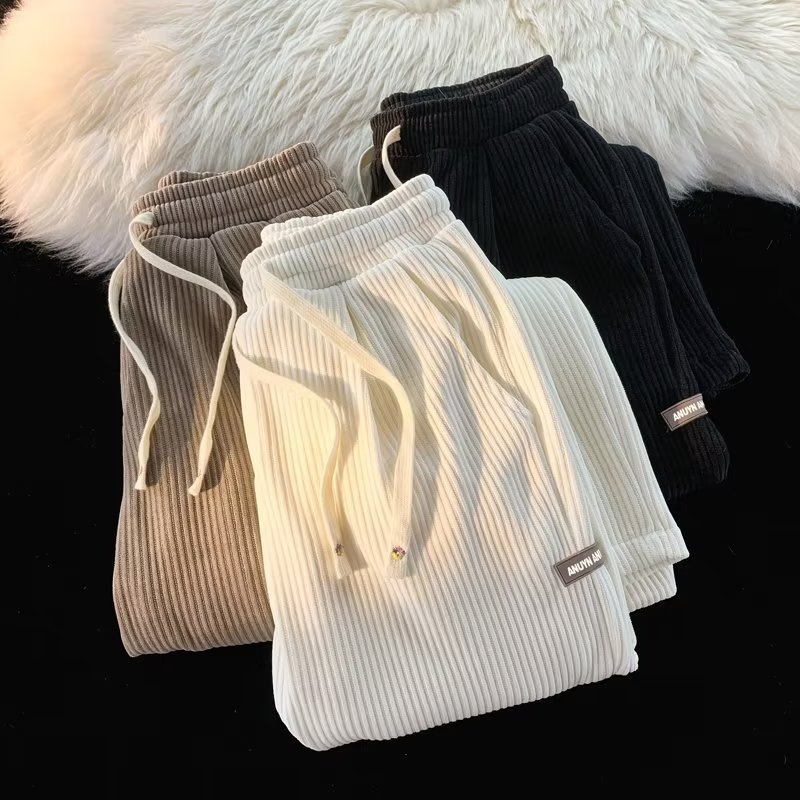2022 코듀로이 라벨 캐주얼 바지 남성용 가을과 겨울 두꺼운 느슨한 소년 스트레이트 바지 머리카락 세대스토어 가기