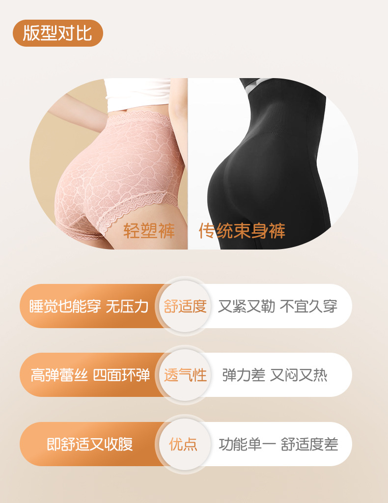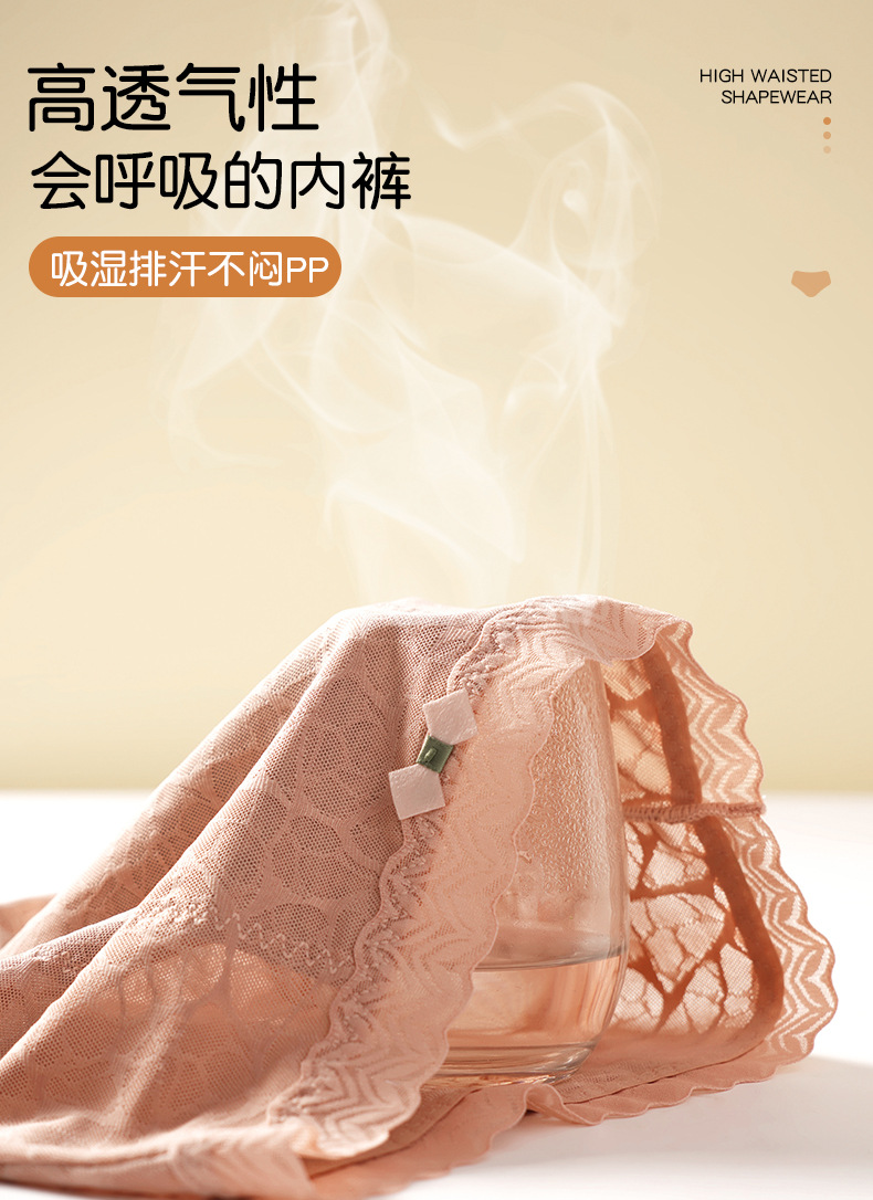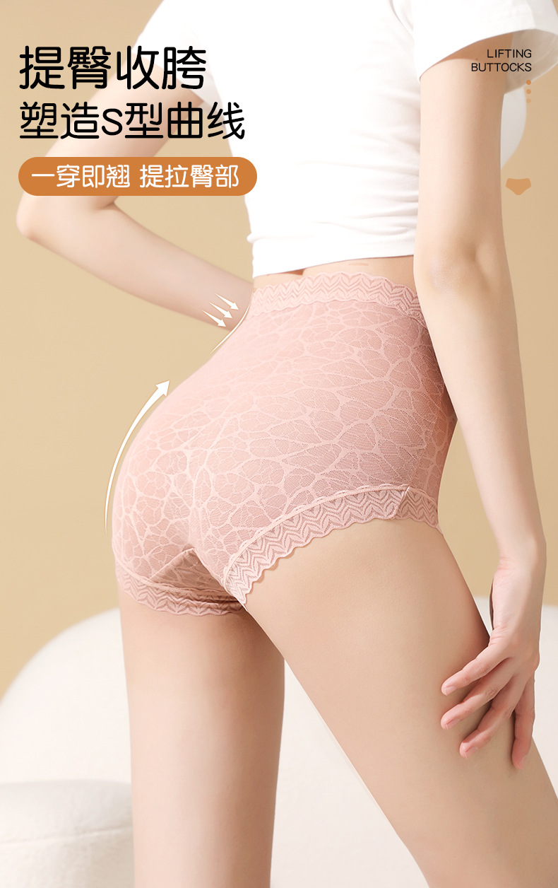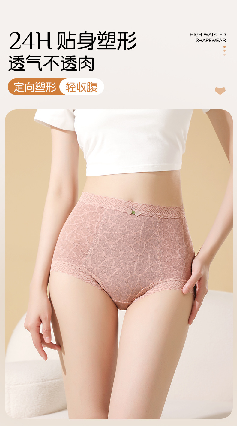 TikTok 핫 뉴 스타일 속옷 여성용 하이 웨이스트 배꼽 꽉 배 여자의 귀여운 레이스 흔적없는 삼각형 반바지스토어 가기