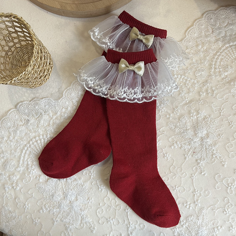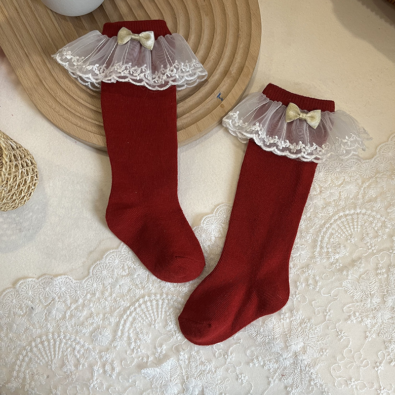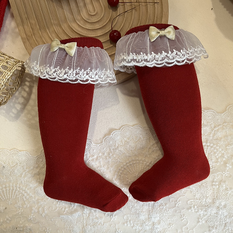 스페인 어린이 활 중간 길이 스타킹 새해 레이스 아기 스타킹 레드 일반 스타킹