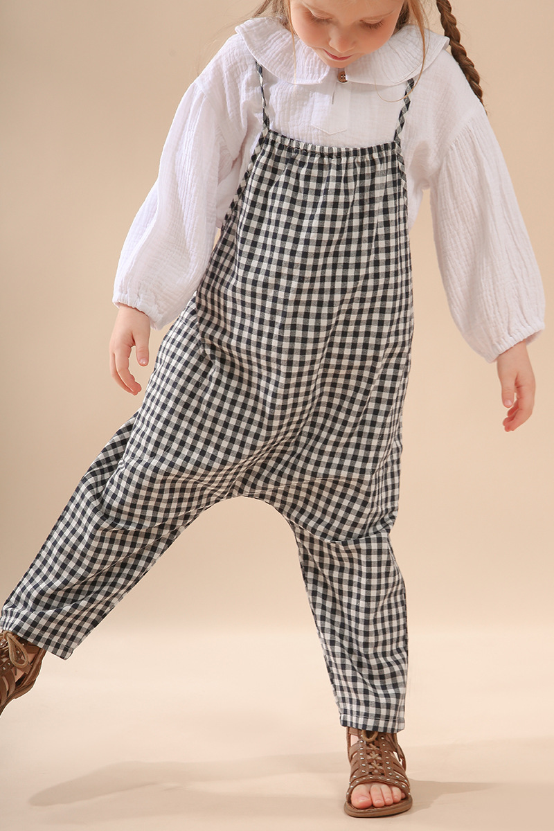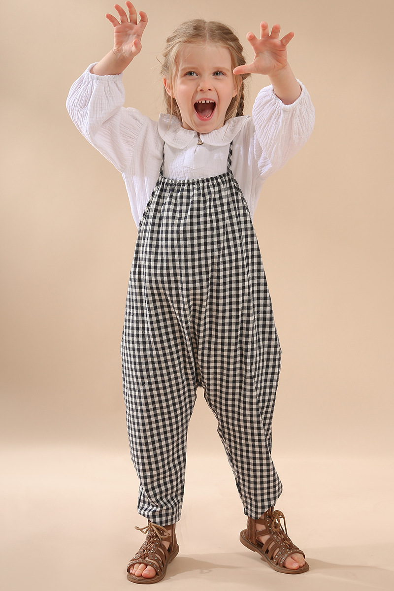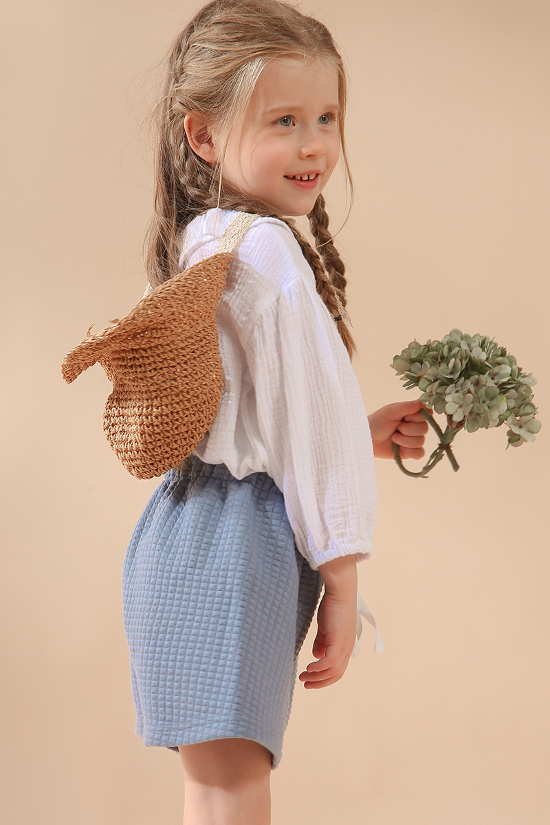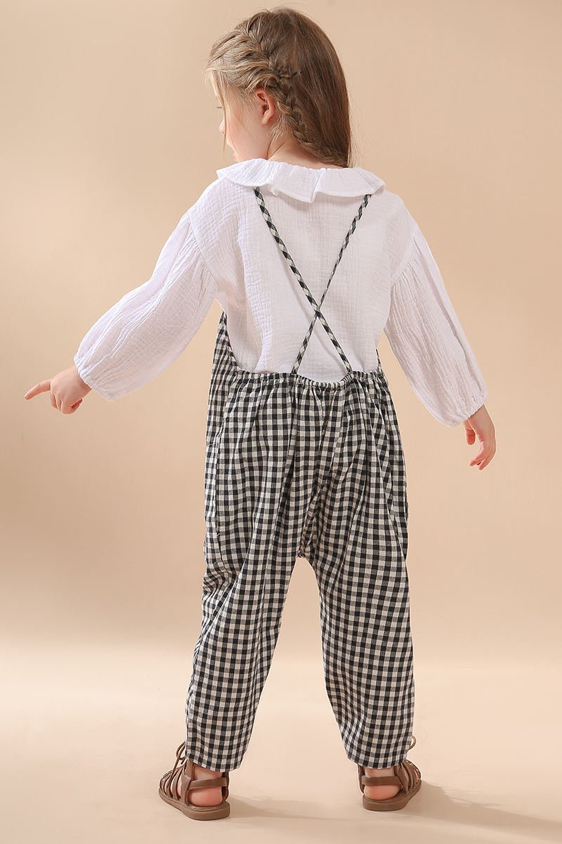 여자 더블 레이어 코튼 거즈 셔츠 연꽃 잎 칼라 피부 친화적 인 2025 봄 새로운 귀여운 스타일 랜턴 슬리브 아동 의류 순수 코튼 탑스토어 가기