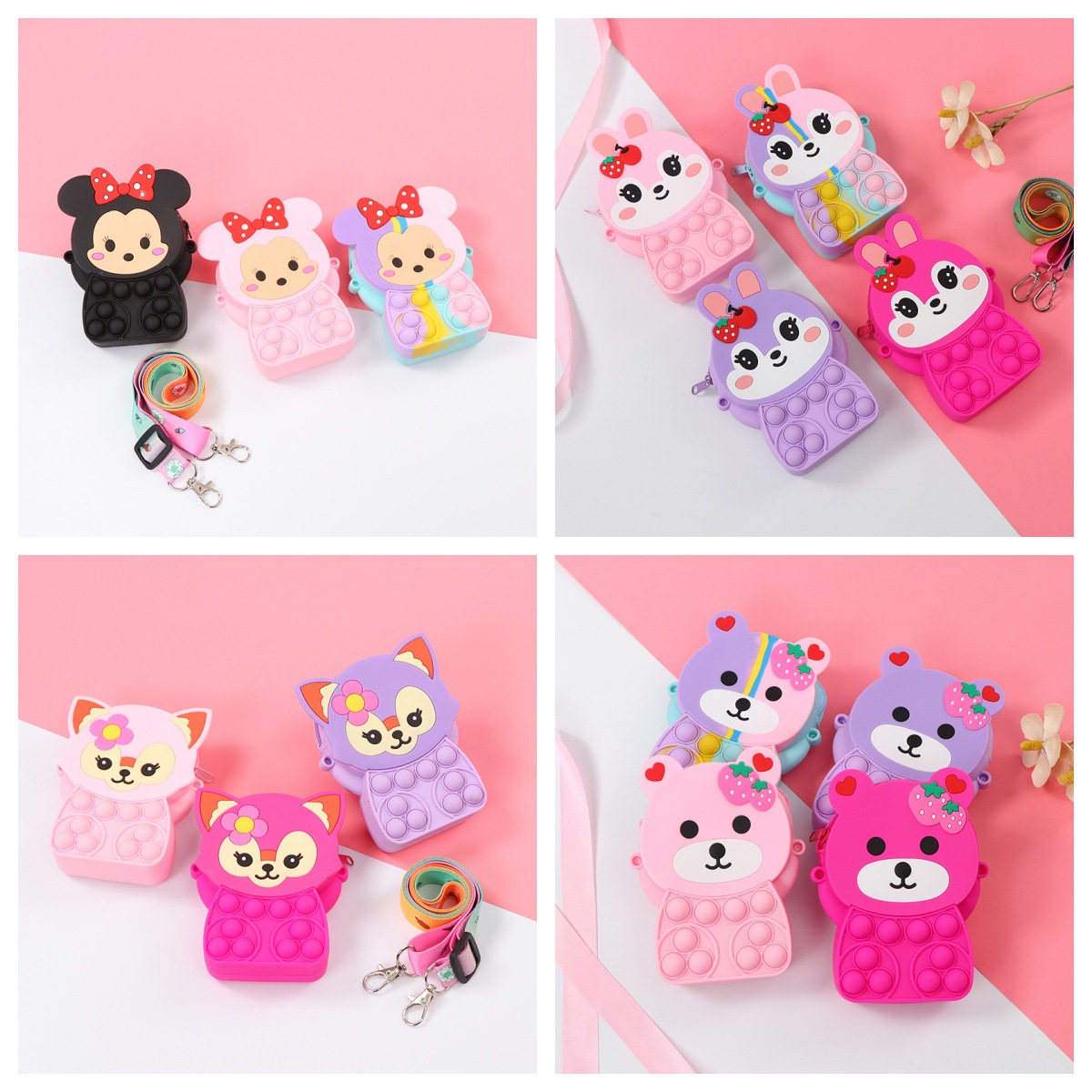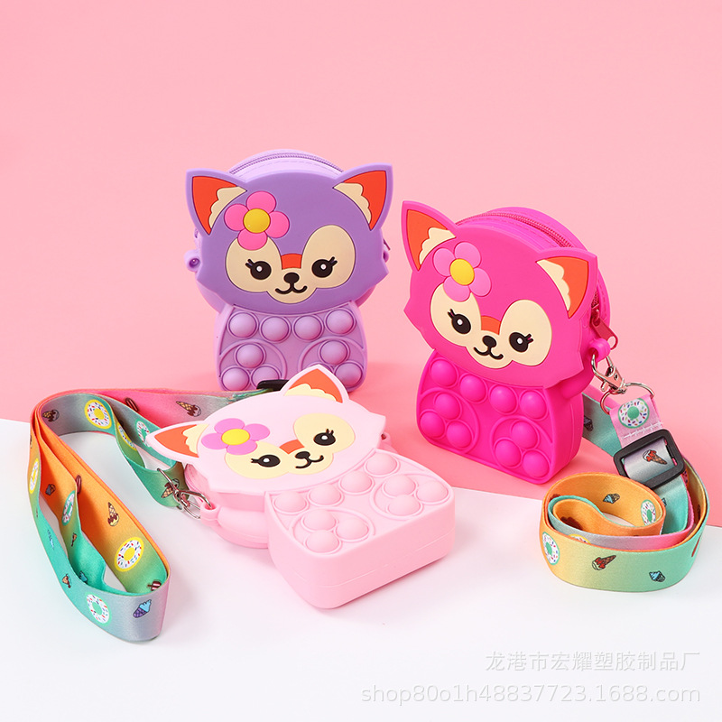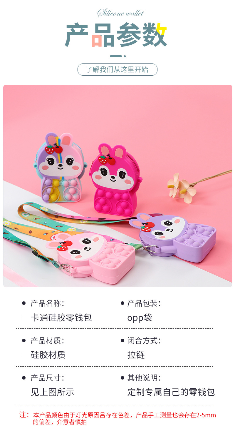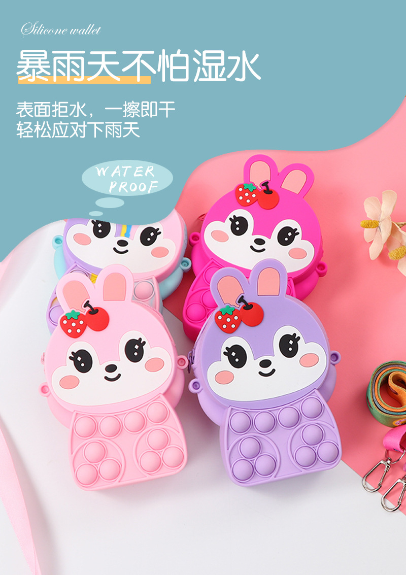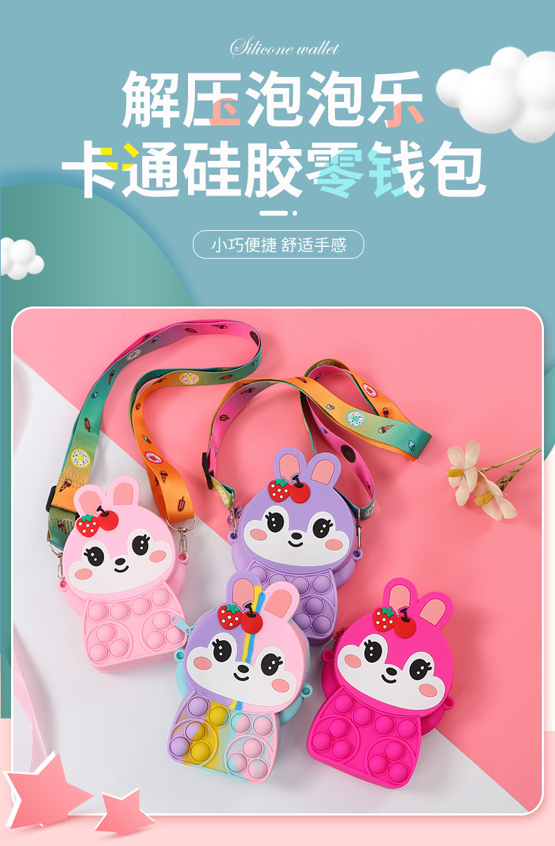 귀여운 토끼 어린이 실리콘 동전 지갑 캔디 젤리 보관 가방 핀치 버블 퍼즐 감압 크로스 바디 백