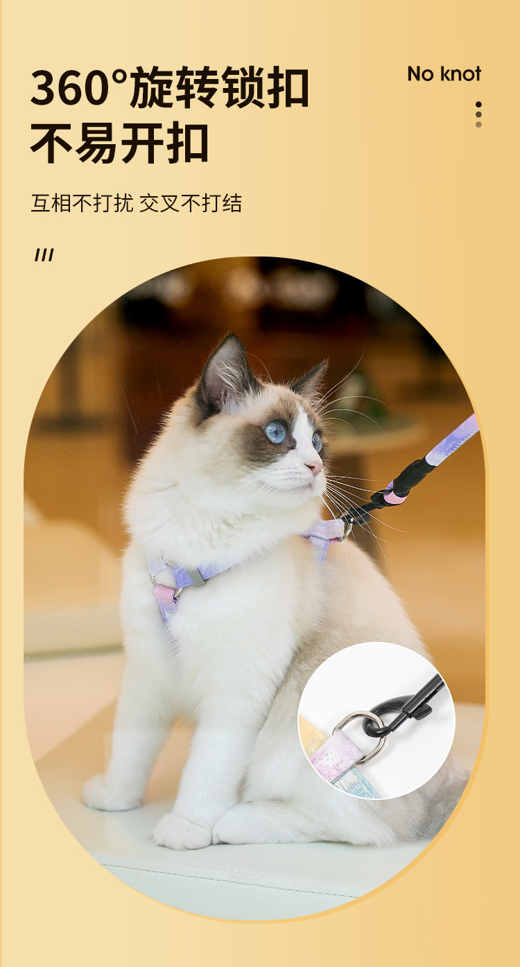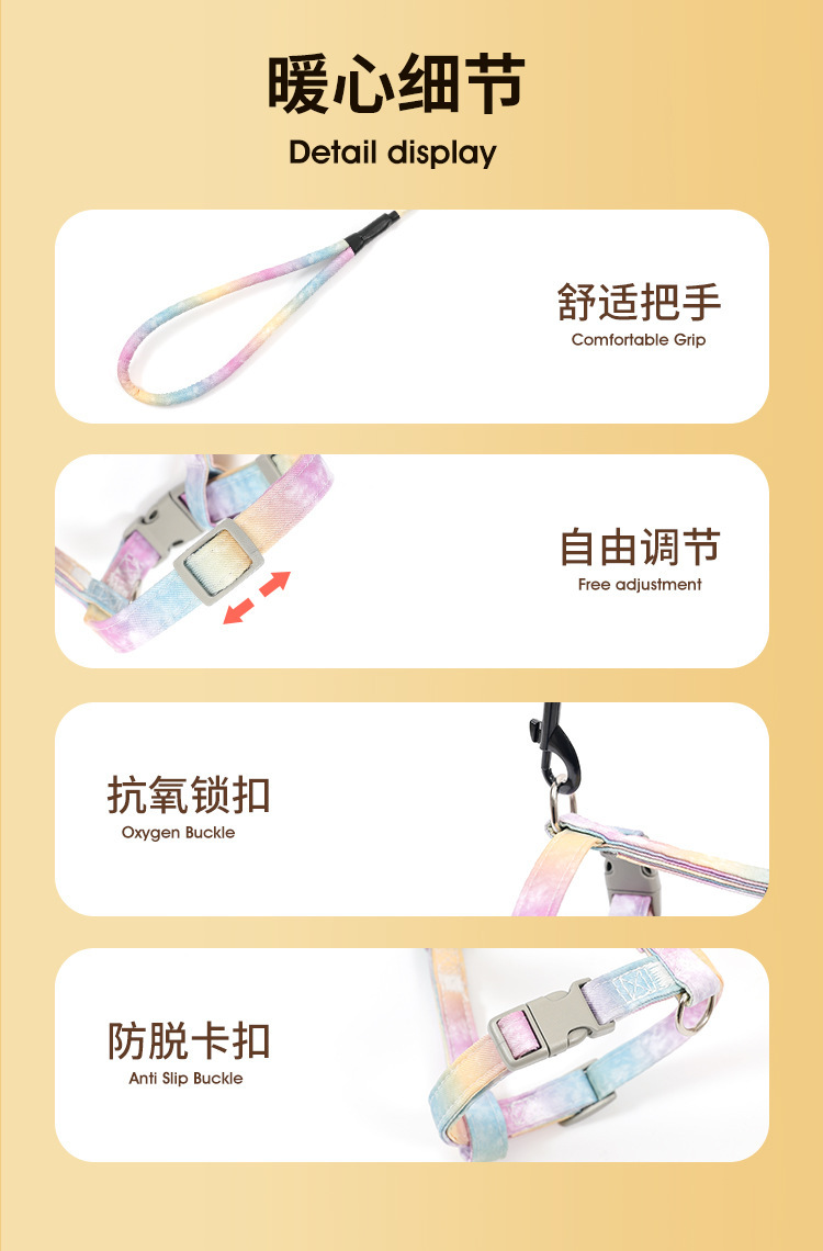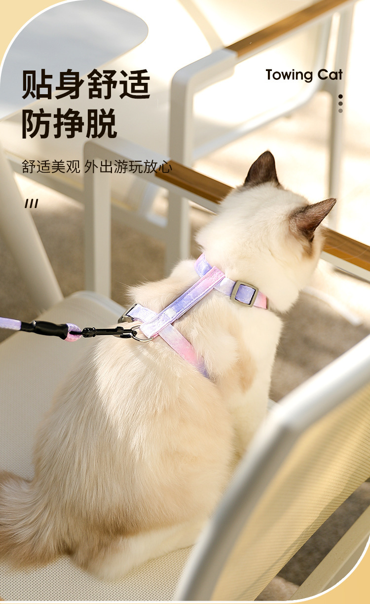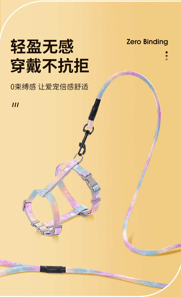 국경 조정 가능한 애완 동물 고양이 그라디언트 컬러 가죽 끈 세트 작은 개 가죽 끈 개 I 자형 가슴 끈