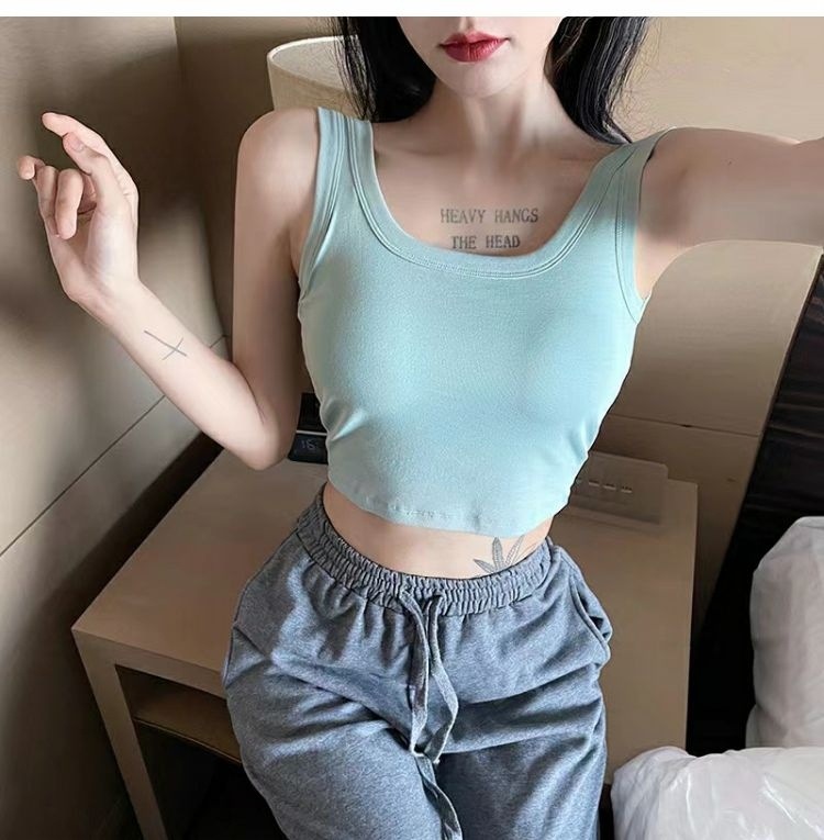 여성용 아름다운 등끈 속옷, 가슴 패드가 있는 작은 조끼, 바닥 레이어, 튜브탑 올인원 크롭탑스토어 가기