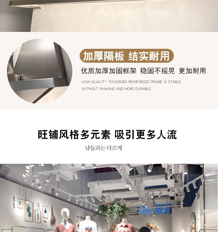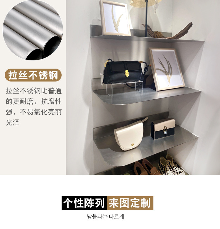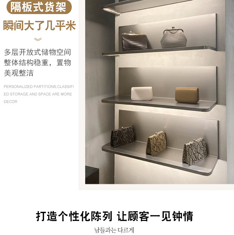 의류 매장 다층 디스플레이 랙 가방 랙 벽 신발 가방 보석 창 디스플레이 랙 스테인레스 스틸 파티션 스토리지 랙