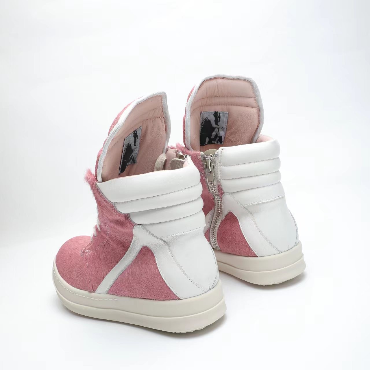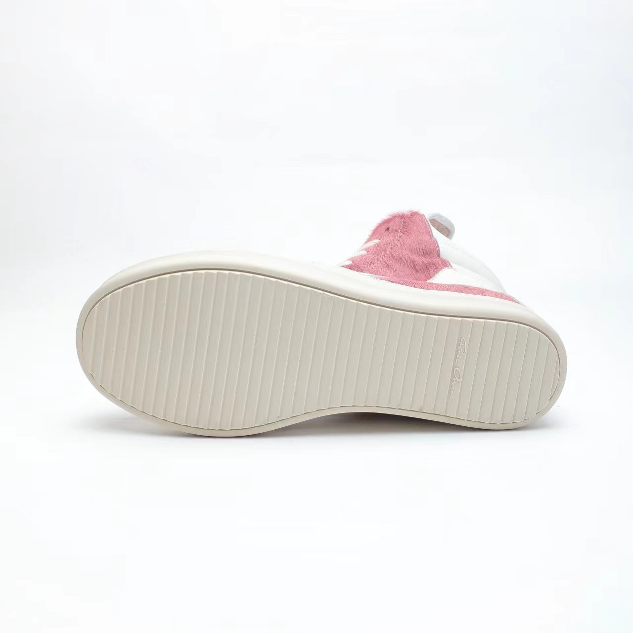 광저우 유럽풍 2025 캐주얼 패션 말털 하이탑 핑크색 두꺼운 밑창 라운드 토 미들 튜브 삼각형 화이트 보드 슈즈 숏부츠