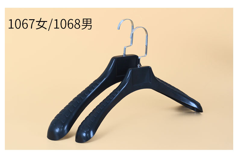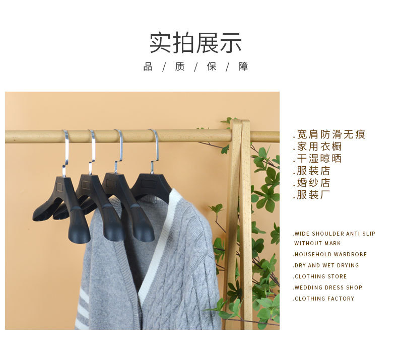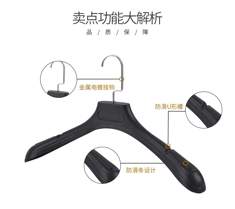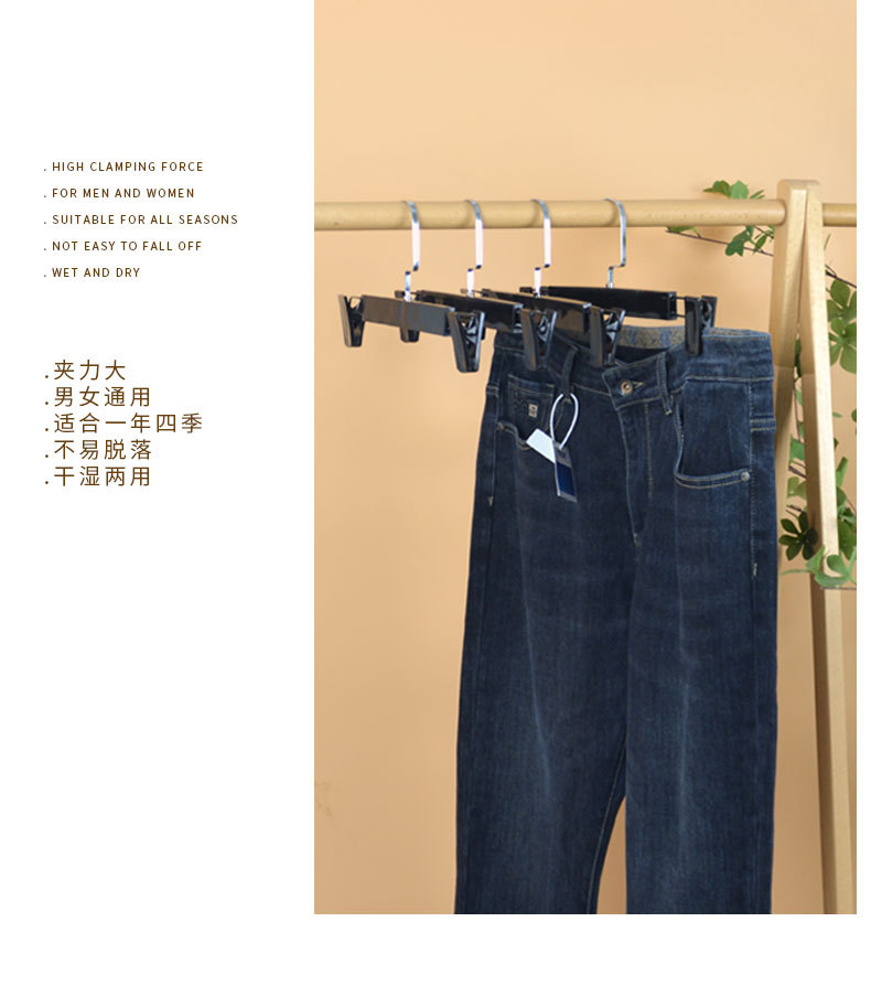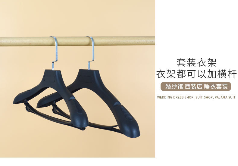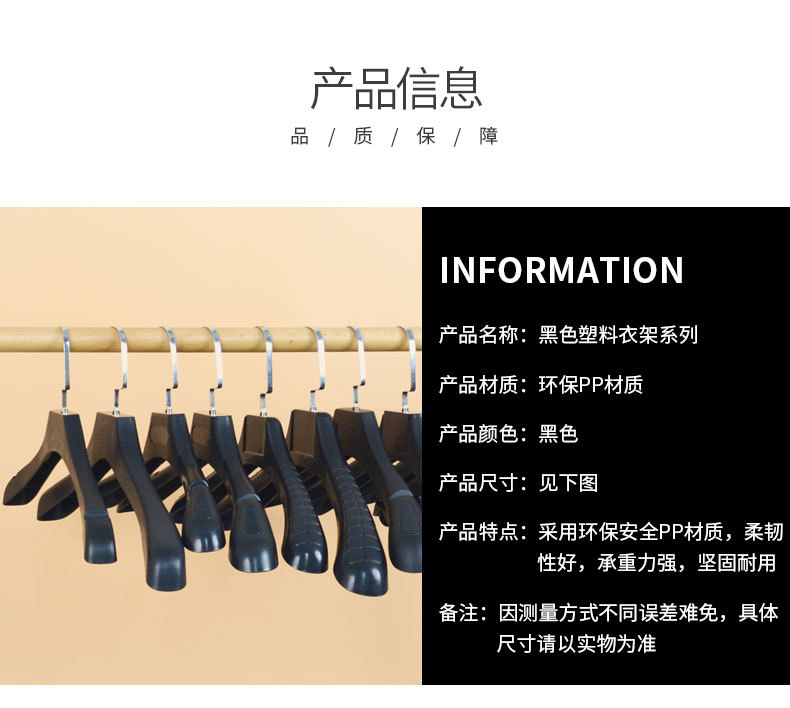 미끄럼 방지 무자국 플라스틱 옷걸이, 의류 매장 전용 검정색 옷걸이, 두꺼운 성인용 옷걸이, 바지걸이, 맞춤 도매스토어 가기