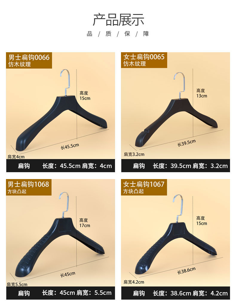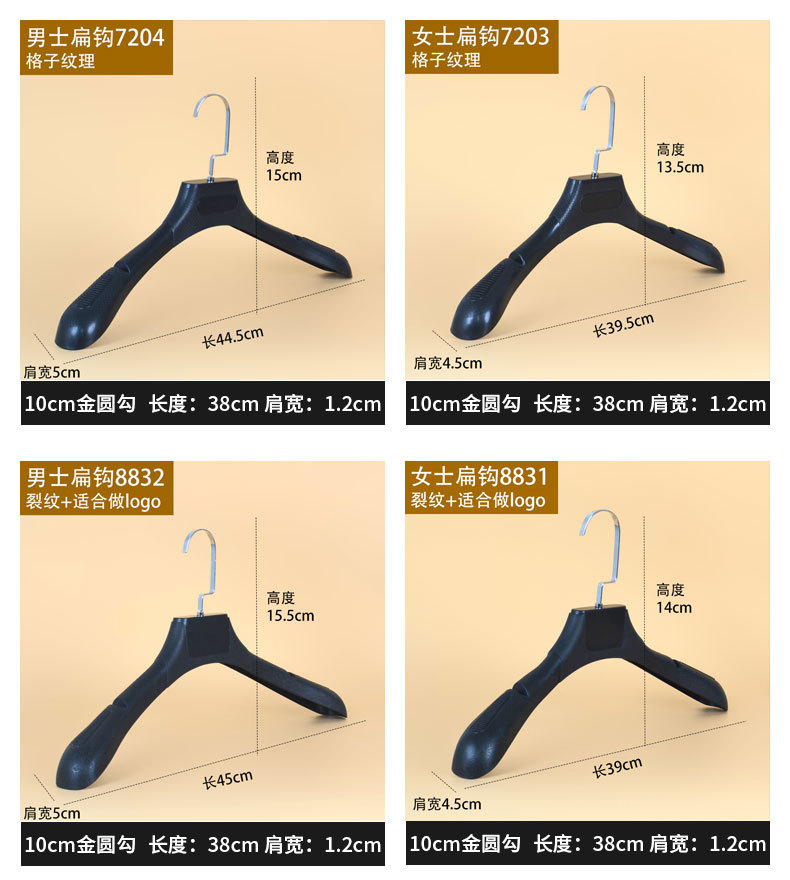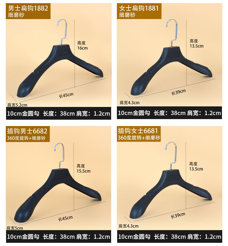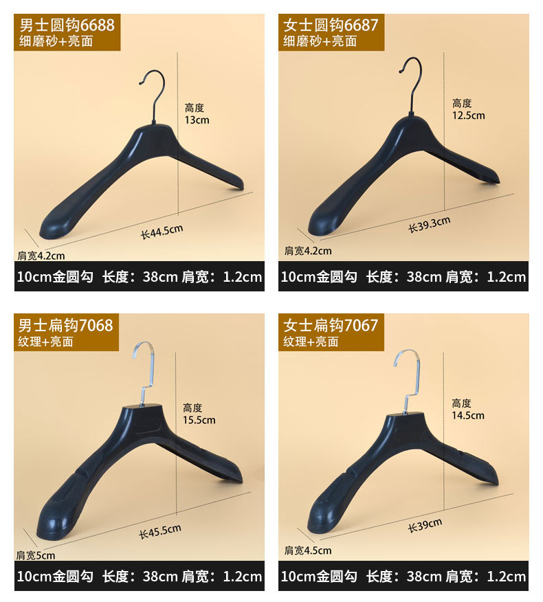 미끄럼 방지 무자국 플라스틱 옷걸이, 의류 매장 전용 검정색 옷걸이, 두꺼운 성인용 옷걸이, 바지걸이, 맞춤 도매스토어 가기
