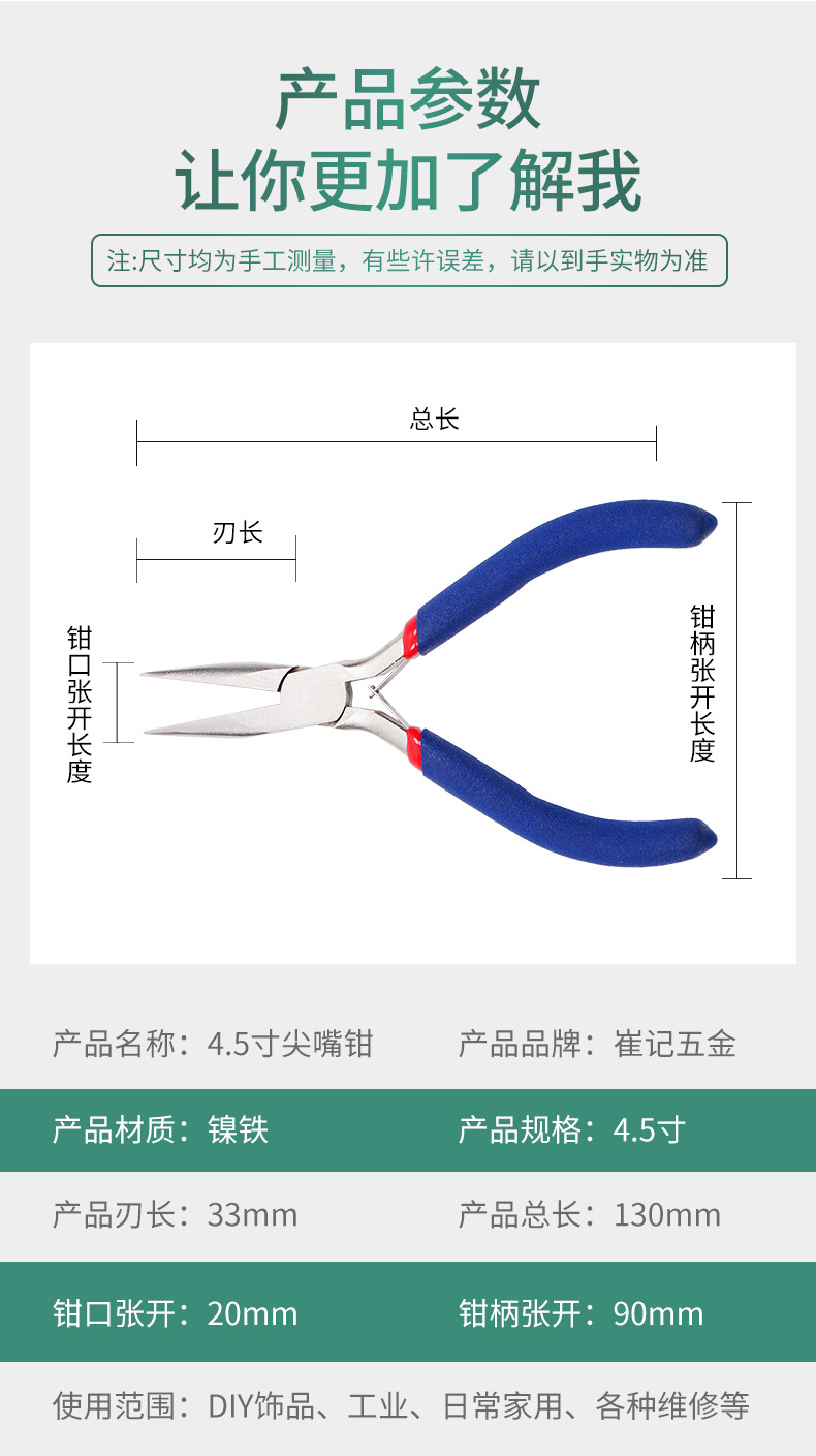 • 4.5 인치 바늘 코 펜치 정밀 펜치