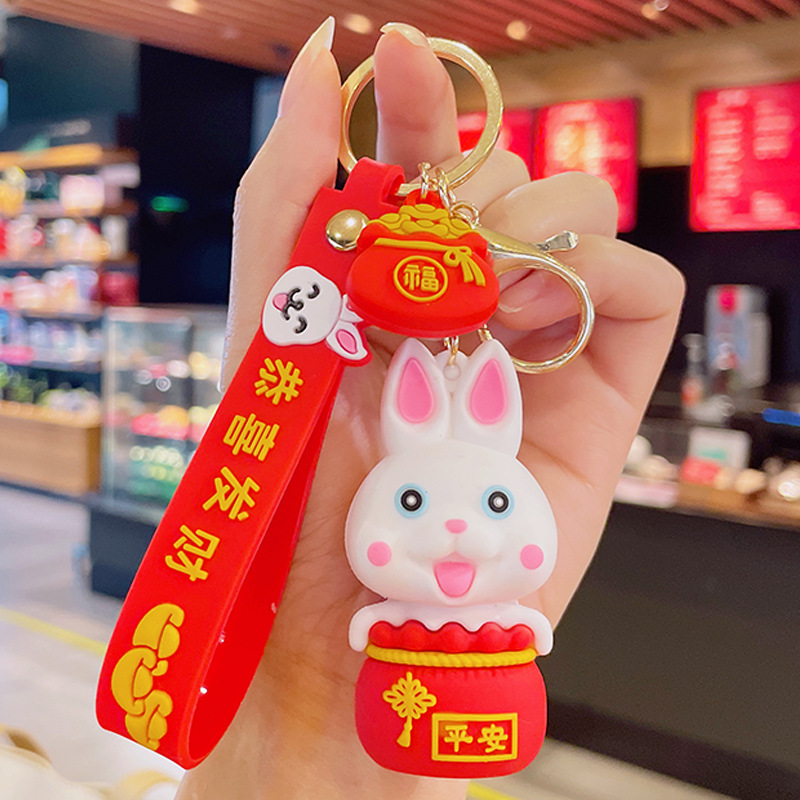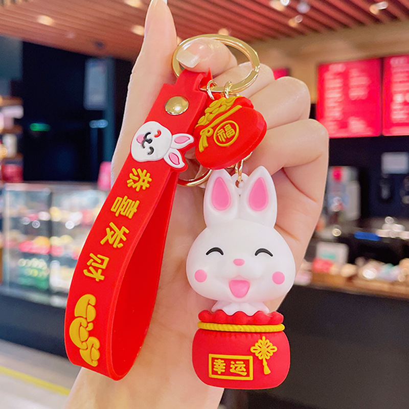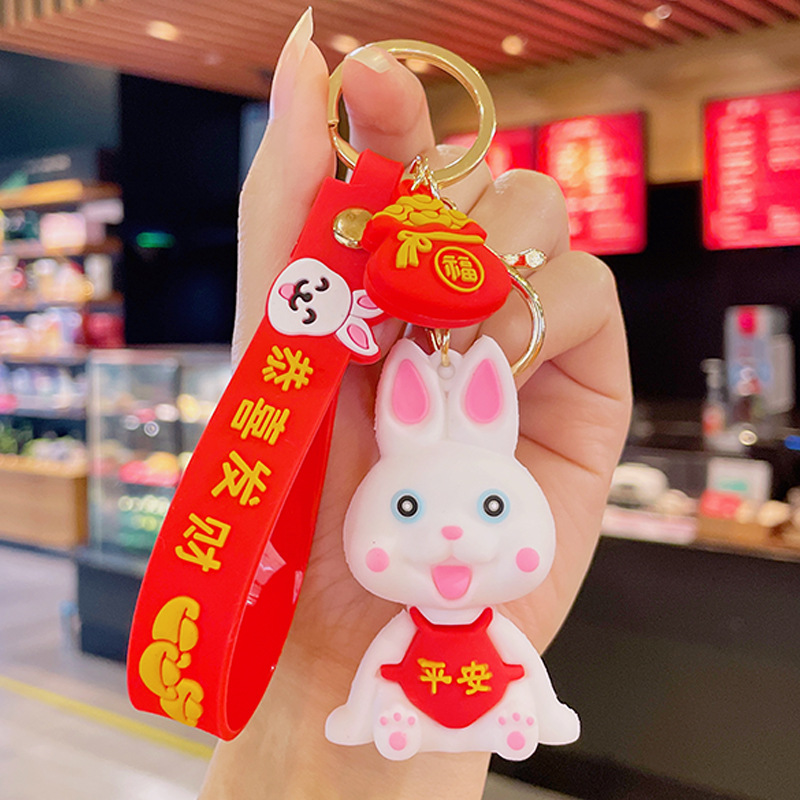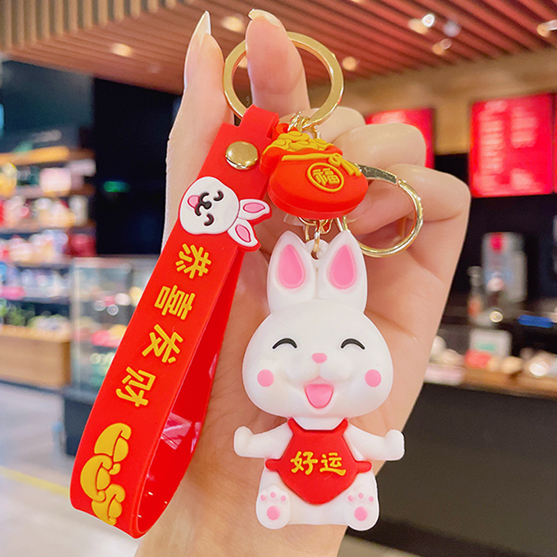 행운 새해 토끼 열쇠 고리 도매 귀여운 토끼 년 작은 선물 커플 가방 펜던트 자동차 열쇠 고리 축하합니다스토어 가기