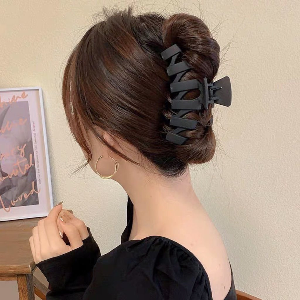 Oufeile matte 텍스처 그립 클립 대형 크로스 상어 클립 백 헤드 높은 말꼬리 머리핀 헤어 액세서리 도매