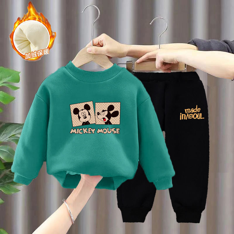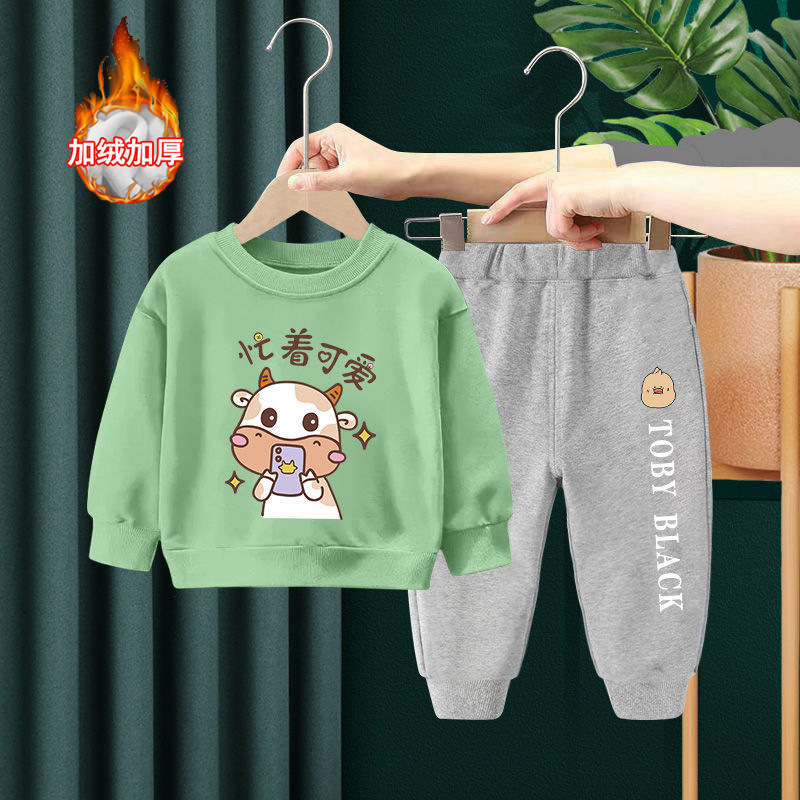 아동 의류 공장 도매 라이브 공급 아기 외국 스타일 어린이 소년 조끼 기모 투 피스 세트스토어 가기