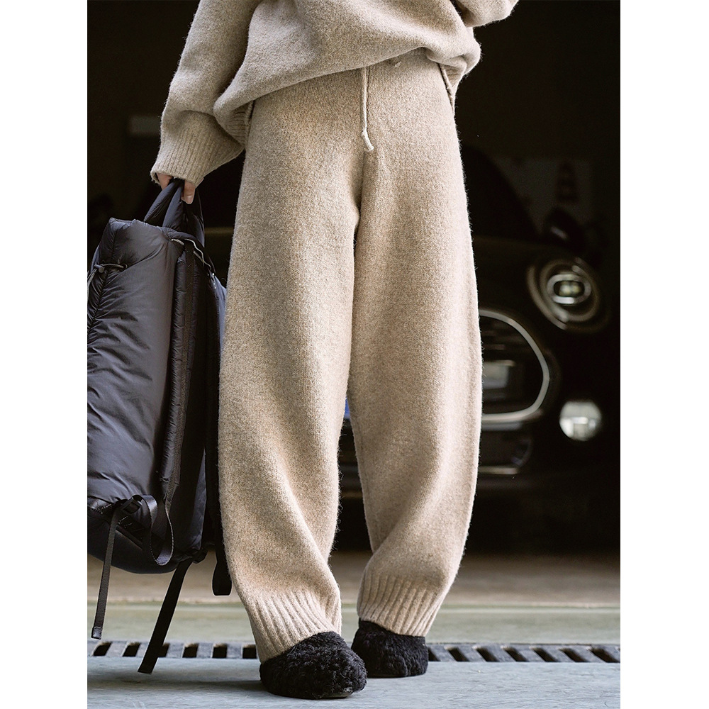 겨울 새로운 한국 스타일 게으른 울 플로럴 하이 웨이스트 프로필 캐주얼 바지 느슨한 부드럽고 편안한 여성용 두꺼운 바지